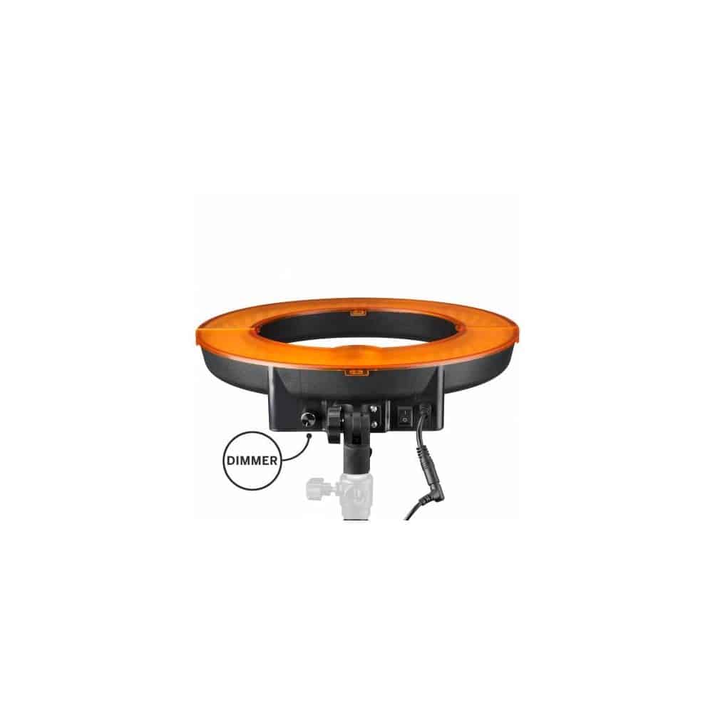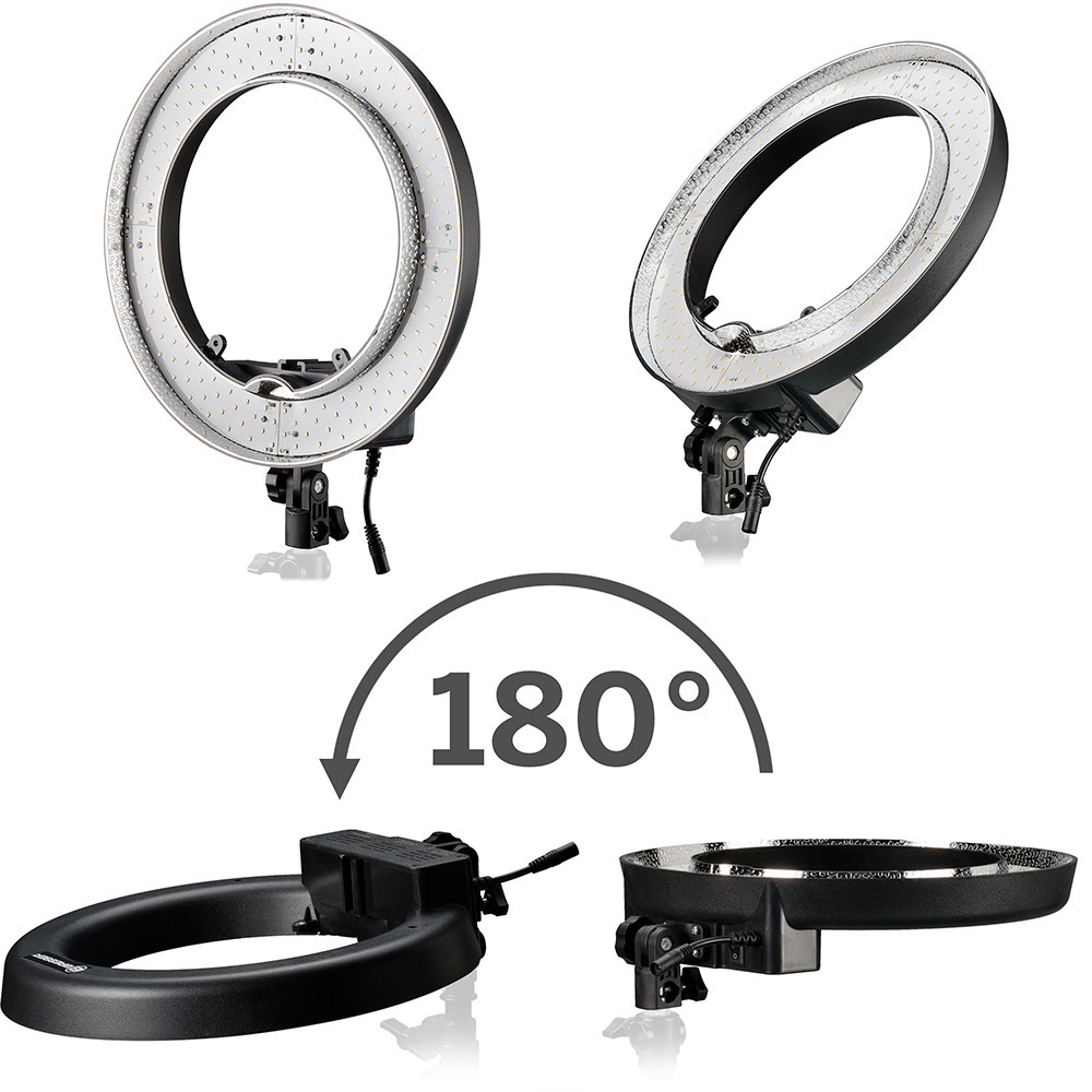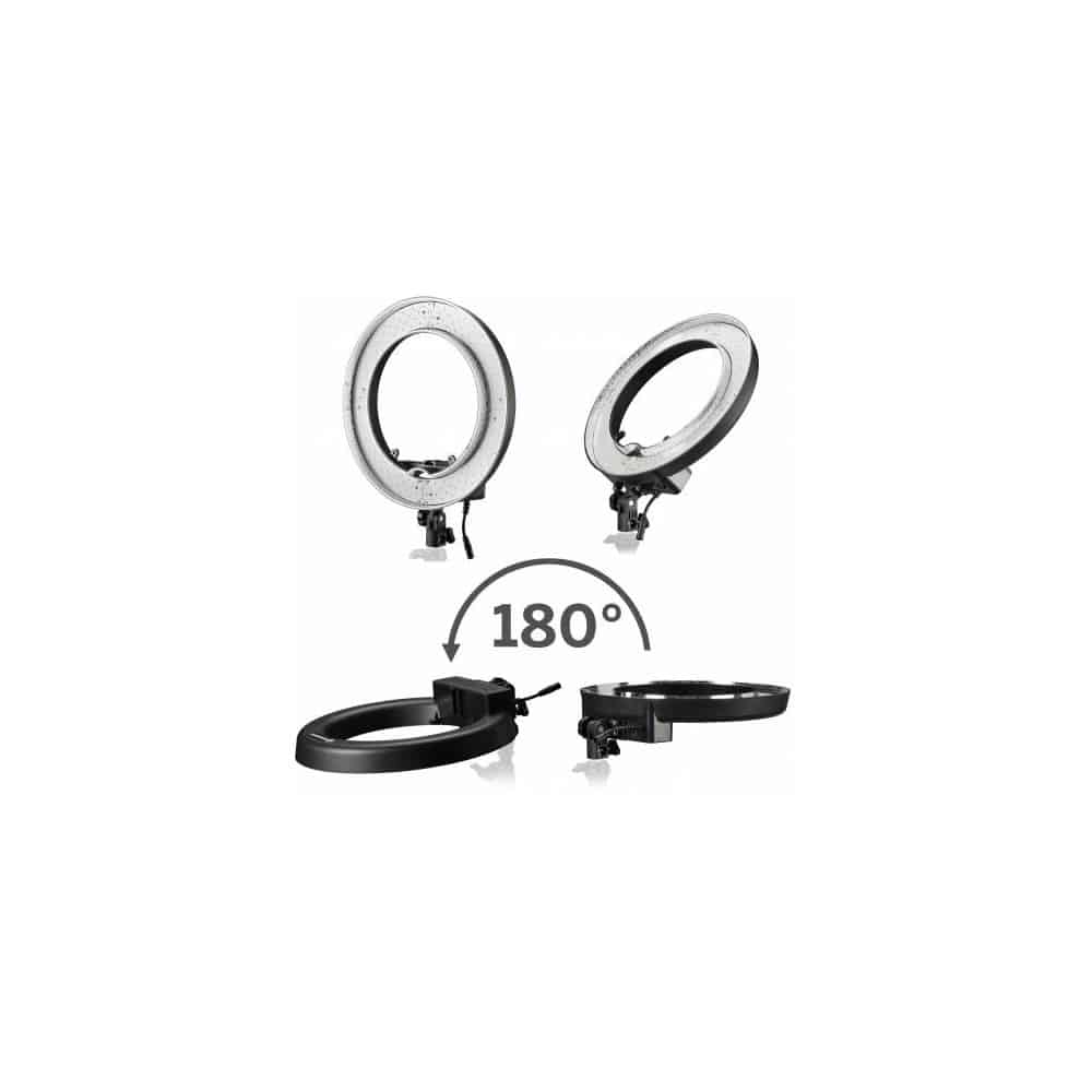 Conexión inclinable para todos los trípodes de lámpara con adaptador de espiga. INCLUYE: 1 lámpara anular