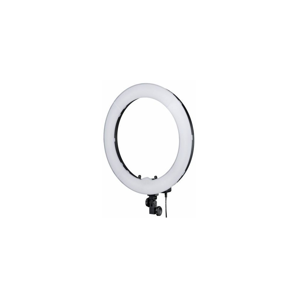 El anillo fluorescente de luz diurna en forma de anillo va colocado en un reflector de metal y se caracteriza por su iluminación fiable y constante. Es muy recomendable para profesionales de la fotografía digital y de las redes sociales.