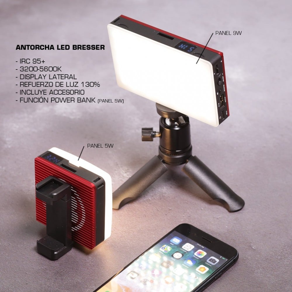 La Bresser Pocket Light 9W tiene una temperatura de color infinitamente ajustable (24 pasos) de 3200-5600K. El brillo puede pasar del 10% al 100%. Cuenta con una carcasa de aluminio resistente y duradera. Además, está equipada con dos conexiones universales de trípode de 1/4″-20. Es muy versátil e ideal para el videógrafo y el fotógrafo de exteriores o vlogger. Además, la Bresser Pocket Light 9W, con una batería recargable de litio incorporada y un puerto de carga USB tipo C, dura un promedio de 80 minutos. Dispone de un modo Boost con una opción de aumento. Esta opción permite, temporalmente, establecer un máximo de brillo más alto, de hasta un 30%. Puede utilizarse en intervalos de aproximadamente 60 segundos.