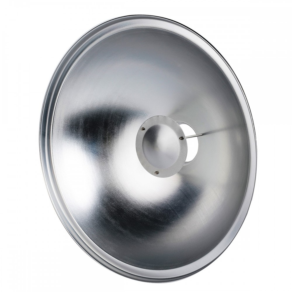 Es la versión más alta en calidad! Este ultra plato de belleza de 57 cm tiene un interior plateado mate , para una iluminación uniforme. Gracias a la forma parabólica, el haz de luz es dirigido a un punto focal. Su efecto se encuentra entre una caja de luz y la iluminación directa. Se le da al sujeto un mayor contraste y produce un efecto de resaltado. El difusor interno opcional para la lámpara de modelado y el tubo de flash, se puede quitar fácilmente si es necesario para obtener un efecto más directo. Si deseas canalizar aún más la luz, existe de manera opcional, una rejilla de celosía o panal de abeja, ya disponible. Muy adecuado para la fotografía de retrato