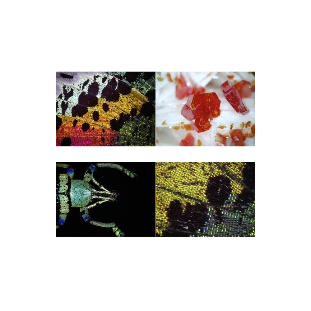 El microscopio dispone de un soporte metálico estable y adaptable, cuya altura puede ajustarse en función de la altura del objeto y del aumento utilizado. Esto permite examinar objetos grandes y muy planos (por ejemplo, la impresión de documentos).