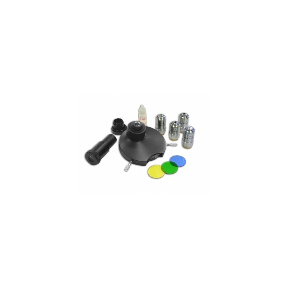 BRESSER set de contraste de fase para 57-series – Para aumentar el contraste de acuerdo con el índice de refracción y el espesor de las preparaciones. El contraste de fase contiene cuatro “Iris” diferentes , contraste de cuatro fases de objetivo (10x, 20x, 40x, 100x aceite) y tres filtros de color. Una colimación permite una fácil adaptación de los liris.