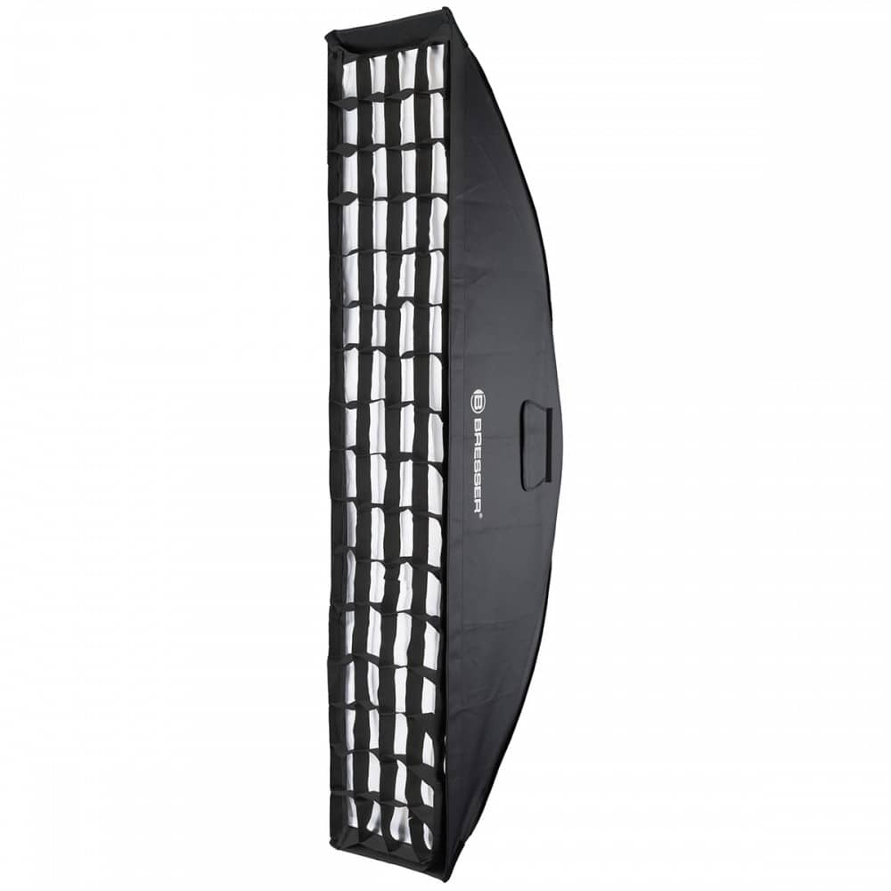 Esta caja de luz rectangular de 50x130cm de alta calidad produce una hermosa luz difusa. Gracias a los pasadores de acoplamiento de metal también se adapta a los flashes con una conexión Bowens. También hay disponibles anillos adaptadores baratos para adaptar a luces en Elinchrom, Multiblitz, Broncolor, Hensel (véase más adelante en ‘Opciones’).