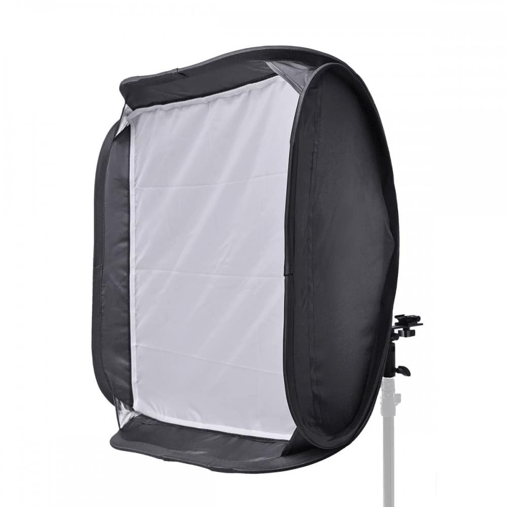 Esta es una caja de luz universal, que es adecuada para todos los flash de cámara. Con un adaptador opcional , la caja de luz se puede conectar también a un flash de estudio. En la parte trasera de la caja de luz , hay una abertura a través de la cual se puede insertar la cabeza de flash.