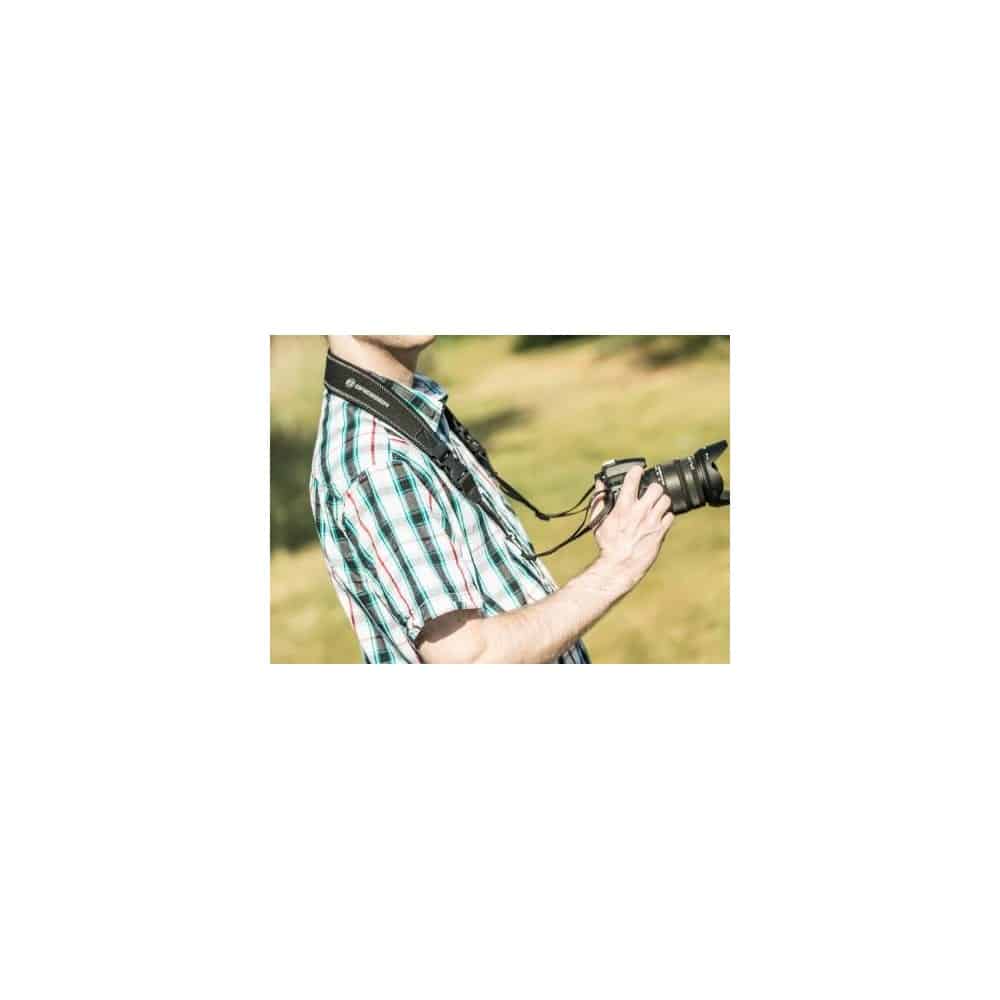 Correa de neopreno reforzada para enganchar directamente a las hebillas laterales y clips para enganchar y desenganchar fácilmente. Superficie antideslizante para evitar roces en el cuello y caidas.