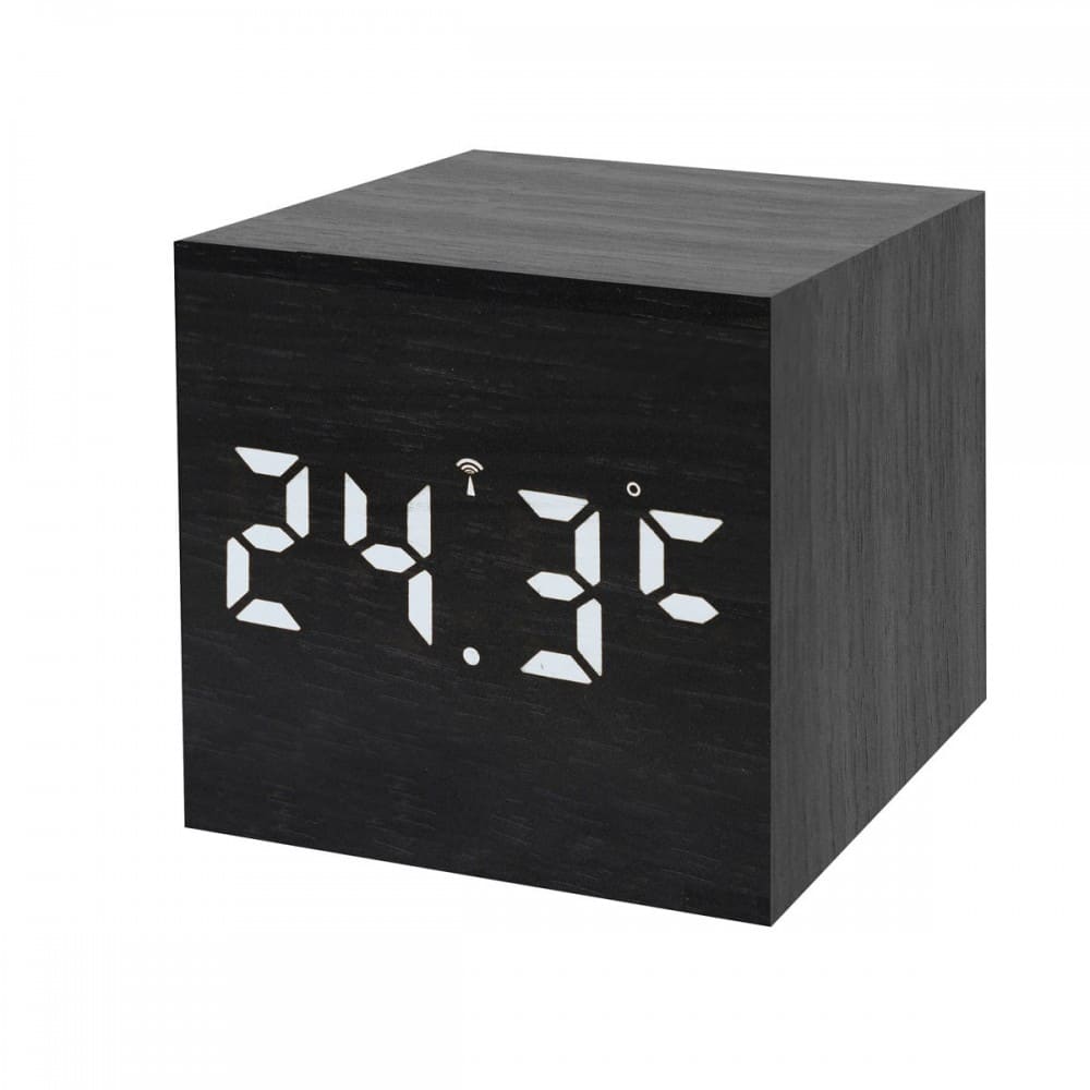 Despertador radio controlado de atractivo aspecto de madera con hora, fecha y temperatura. La iluminación LED puede atenuarse en 3 grados, ideal para los durmientes sensibles a la luz. El despertador puede utilizarse tanto enchufado a la corriente como a pilas (no incluidas). CARACTERÍSTICAS