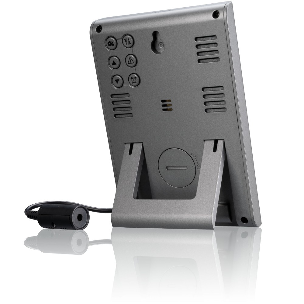 ¿Le gustaría comprender mejor la evolución del clima? Con la estación meteorológica MeteoTemp TBV, siempre se mantiene al tanto del historial de la presión atmosférica. Con solo presionar un botón, la memoria de valores máx./min integrada también le muestra los valores máximos y mínimos de humedad y temperatura. ¿Le gustaría saber de inmediato si hace demasiado calor o demasiado frío en ciertas habitaciones? A continuación, establezca sus límites de temperatura individuales y confíe en la alarma de temperatura.