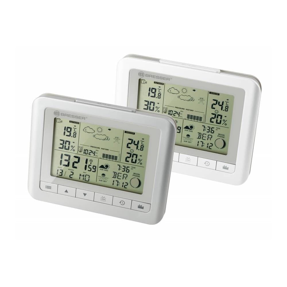 La BRESSER TemeoTrend WF es una estación meteorológica que realmente hace honor a su nombre. Aquí usted no debe conformarse con un aviso de temperatura y humedad ambiental: la TemeoTrend WF le suministra numerosos datos meteorológicos de un vistazo, gracias a la disposición de la pantalla LCD en cinco áreas claramente diferenciadas en las que se muestra esta variedad de información. La representación simbólica de la situación meteorológica actual, la temperatura, humedad ambiental y la tendencia climática, así como el clima en habitación y las fases lunares es comprensible e intuitiva.