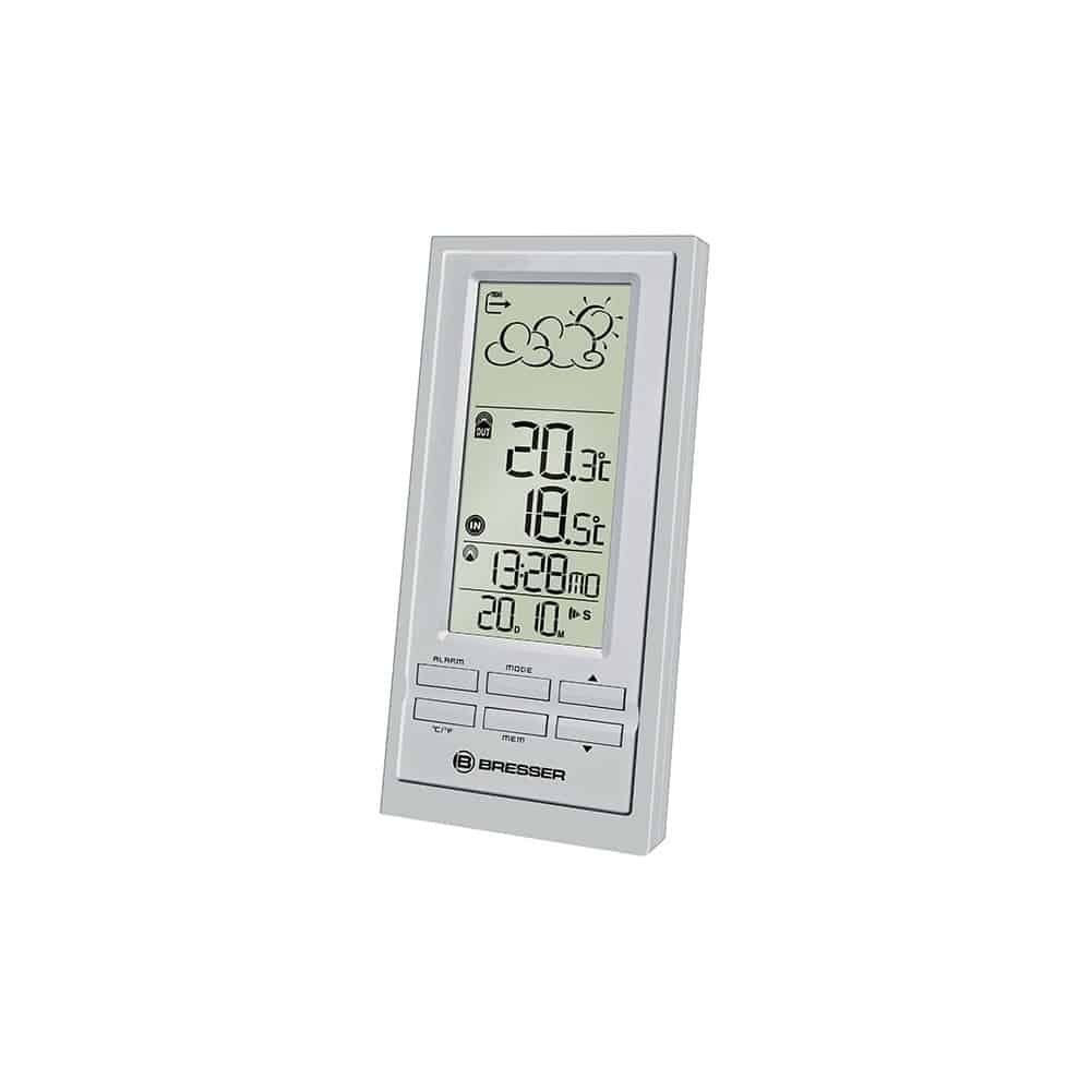 Estación meteorológica que informa de la temperatura interior y exterior, del tiempo, la fecha y la hora. También tiene funciones de alarma por cambios de temperatura. Tiene un sensor exterior. Para sobremesa o colgar en la pared. Disponible en color plateado o negro. …