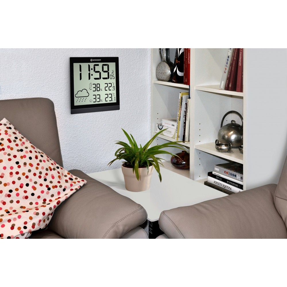 La estación meteorológica BRESSER Temeo Trend JC LCD dispone de una pantalla “ultra gran angular”. Esta pantalla proporciona una lectura fácil de la información desde casi cualquier lugar. El ajuste de la hora, así como el ajuste de horario de verano se realiza automáticamente a través de señal de tiempo (DCF para la UE excepto el Reino Unido / MSF para el Reino Unido / WVVB para EE.UU.). Además con la estación meteorológica podrá saber siempre la temperatura y humedad, tanto interior como exterior y esta proporcionará un pronóstico meteorológico para las próximas 12 a 24 horas.