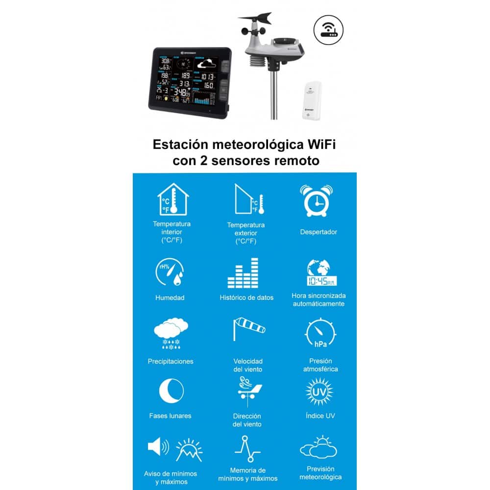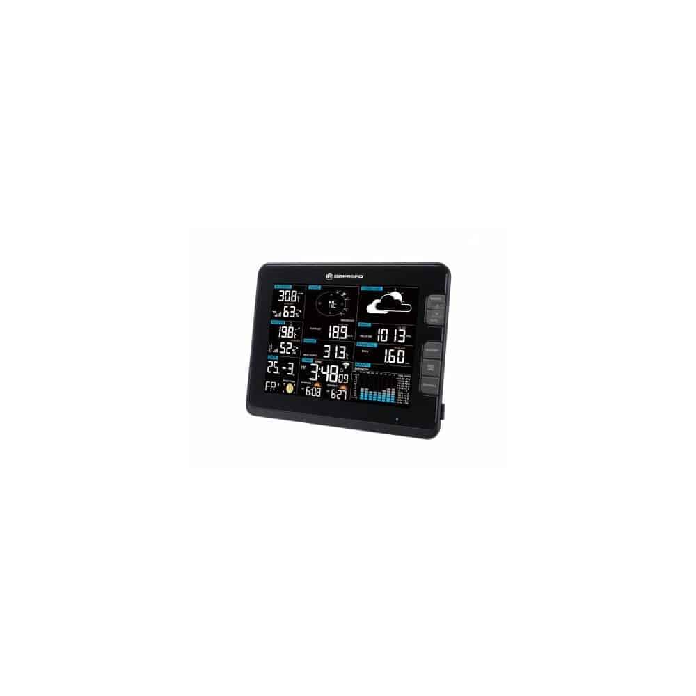 El nuevo BRESSER Centro meteorológico Profesional Wifi 6-en-1 proporciona una amplia información meteorológica. Incluye las funciones Wifi y un radiómetro de luz UV. El sensor exterior 6-en-1 transmite a la estación base los valores obtenidos para los niveles de radiación UV, la velocidad del viento, la dirección del viento, la humedad, la temperatura y las precipitaciones. El sensor exterior 6-en-1 transmite a la estación base los valores obtenidos para los niveles de radiación UV, la velocidad del viento, la dirección del viento, la humedad, la temperatura y las precipitaciones.