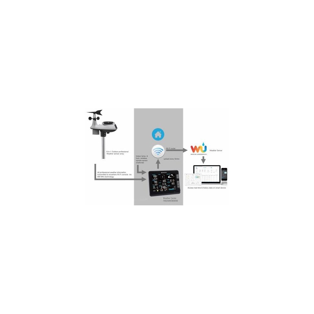 El BRESSER centro meteorológico profesional Wifi Beaufort 6-en-1 le ofrece una función inteligente. El indicador de clima ambiental le informa mediante símbolos sobre el estado de su clima ambiental. Para todos aquellos fascinados por la luna, la estación visualiza las distintas fases lunares.