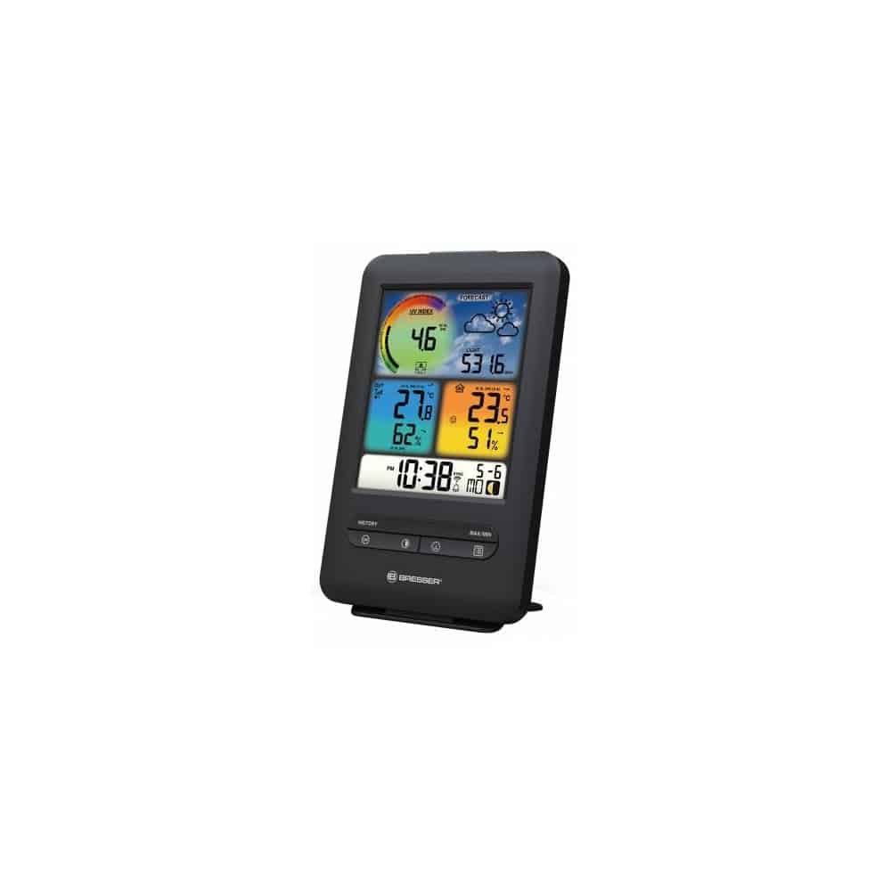 La estación meteorológica BRESSER W-LAN en color con sensor de luz/UV 4en1 convence por su diseño claro y sus colores adecuados. La pantalla está dividida en 4 zonas y ofrece diversa información que se puede subir a Weather Underground y Weathercloud a través de la conexión WiFi.
