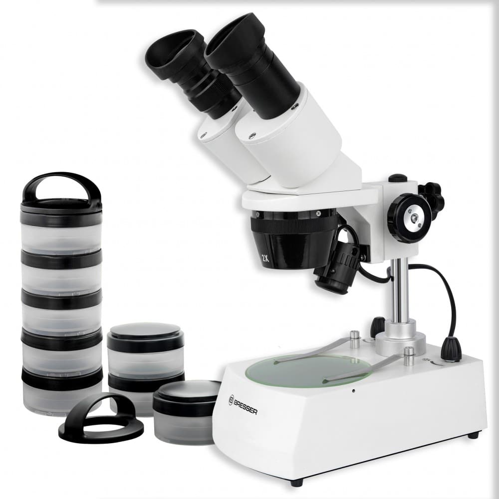 Este microscopio es óptimo para niños ya que no es necesaria una compleja preparación de preparados. Puede colocar el objeto que desee observar directamente en la platina del microscopio. La platina blanca/negra le ofrece diferentes fondos para alcanzar un contraste óptimo.