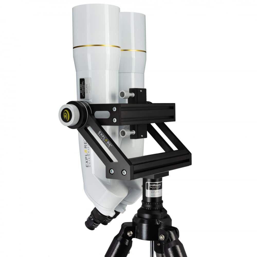 Ajuste el aumento y el campo de visión a sus necesidades individuales y elija entre una amplia gama de oculares disponibles. Todos los tipos de oculares con un diámetro de inserción de 1,25 pulgadas / 31,7 mm pueden utilizarse con los prismáticos de la serie BT. Se recomiendan especialmente los oculares EXPLORE SCIENTIFIC de las series de 62 y 82 grados con distancias focales de 8 a 26 mm (véase el artículo nº 02188xx y 02196xx). El aumento puede variar de 25x a 75x (binoculares de distancia focal : ocular de distancia focal = aumento). Los oculares se sujetan en los prismáticos mediante una abrazadera de anillo de latón precisa que garantiza una posición sin inclinación.