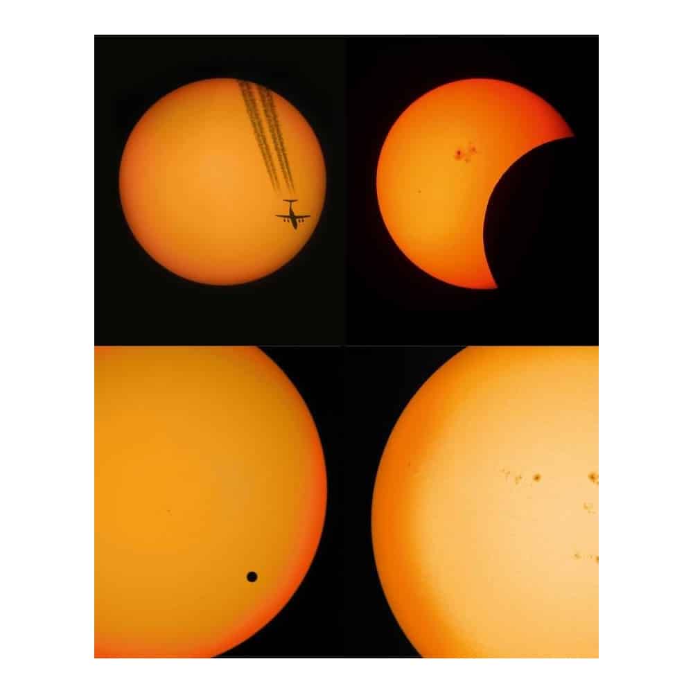 Podrás ver eclipses solares, manchas solares, tránsitos planetarios, aviones de cruce y satélites.