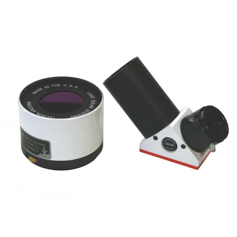El sistema incluye el filtro Blocking B600 concebido para telescopios con una distancia focal de hasta 540mm. Los filtros blocking más grandes, que pueden adquirirse de manera opcional, son, por consiguiente, para distancias focales mayores. El filtro blocking está incorporado en un prisma cenital de 90° para focalizadores de ocular de 2″. Este prisma cenital está dotado con una incorporación para oculares de 1,25″ y una conexión para cámara T2.