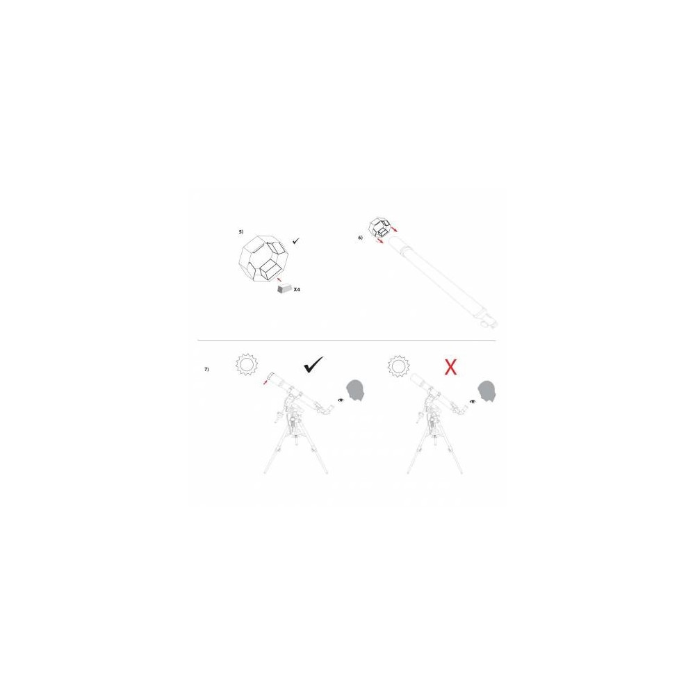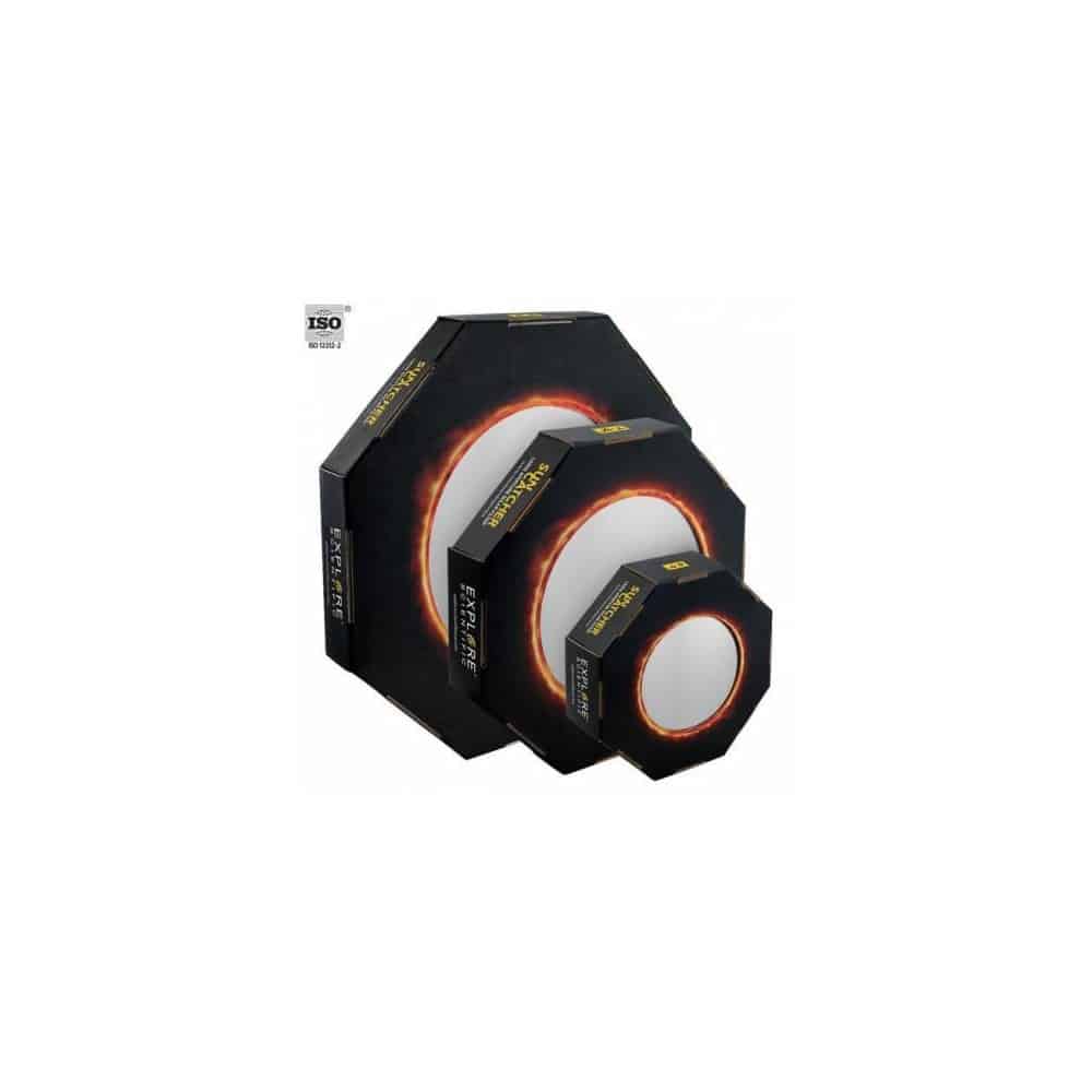 Los filtros solares Sun Catcher de Explore Scientific están disponibles en distintos tamaños para telescopios con un diámetro de apertura de 60mm hasta 254mm. Pueden adaptarse, en gran medida, al diámetro del telescopio en cuestión y son de rápido montaje. Equipe su telescopio de manera sencilla, y sin mucho coste adicional, con un filtro solar de luz blanca absolutamente seguro y observe, por ejemplo, los movimientos de las manchas solares, tránsito de planetas, eclipses y vuelos de aviones.