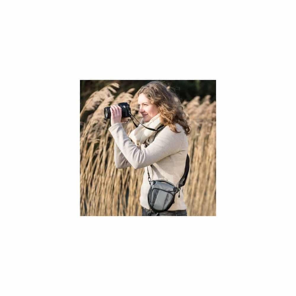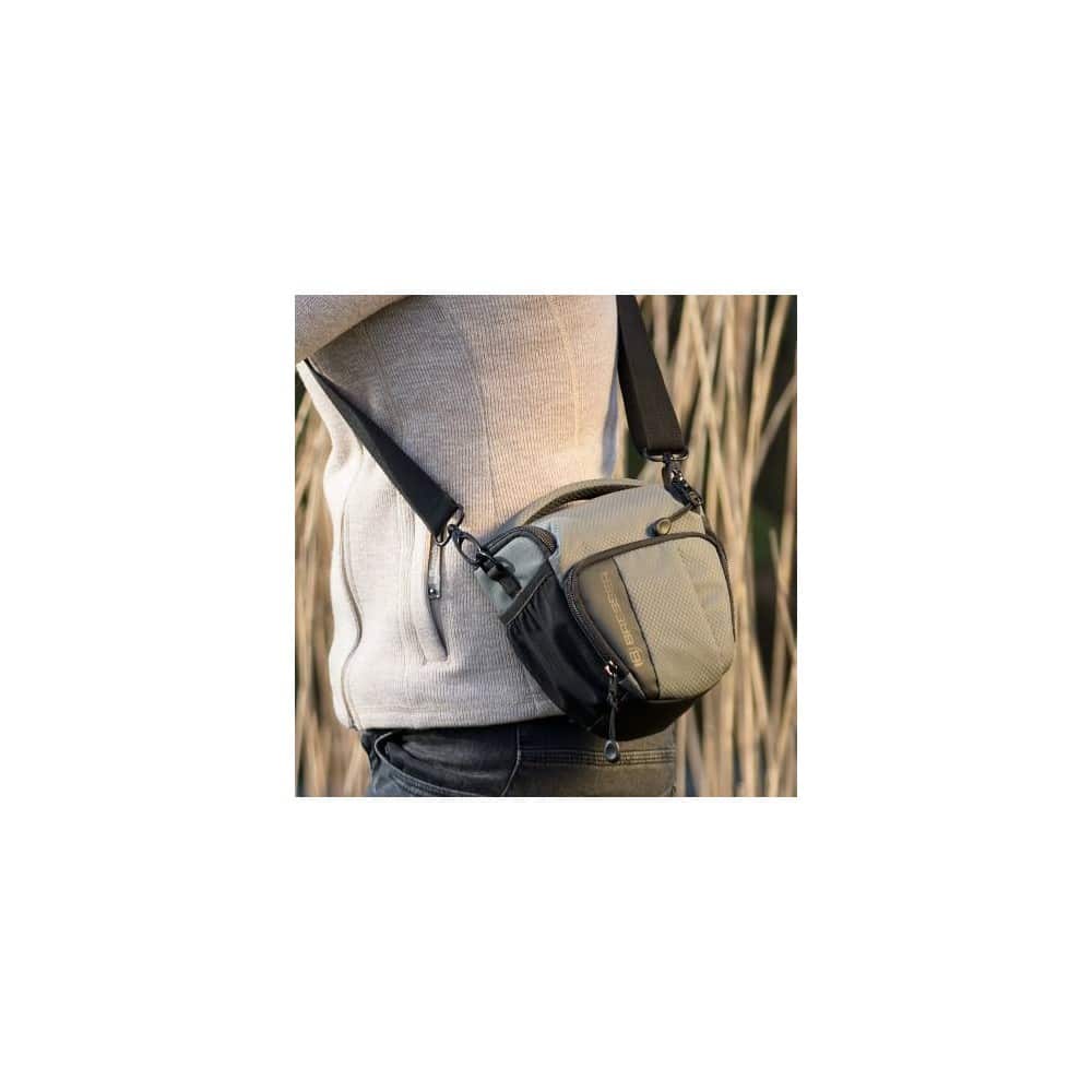 Esta estilosa bolsa para cámara BRESSER Adventure le ofrece mucho espacio para su cámara réflex, así como todos sus accesorios. Todos los compartimentos están acolchados ofreciendo para su cámara y objetivo protección a los arañazos y golpes. El compartimento general está concebido de tal manera que su cámara y objetivo disponen de un perfecto espacio. Con pocos segundos podrá sacar la cámara de su bolsa y usarla.