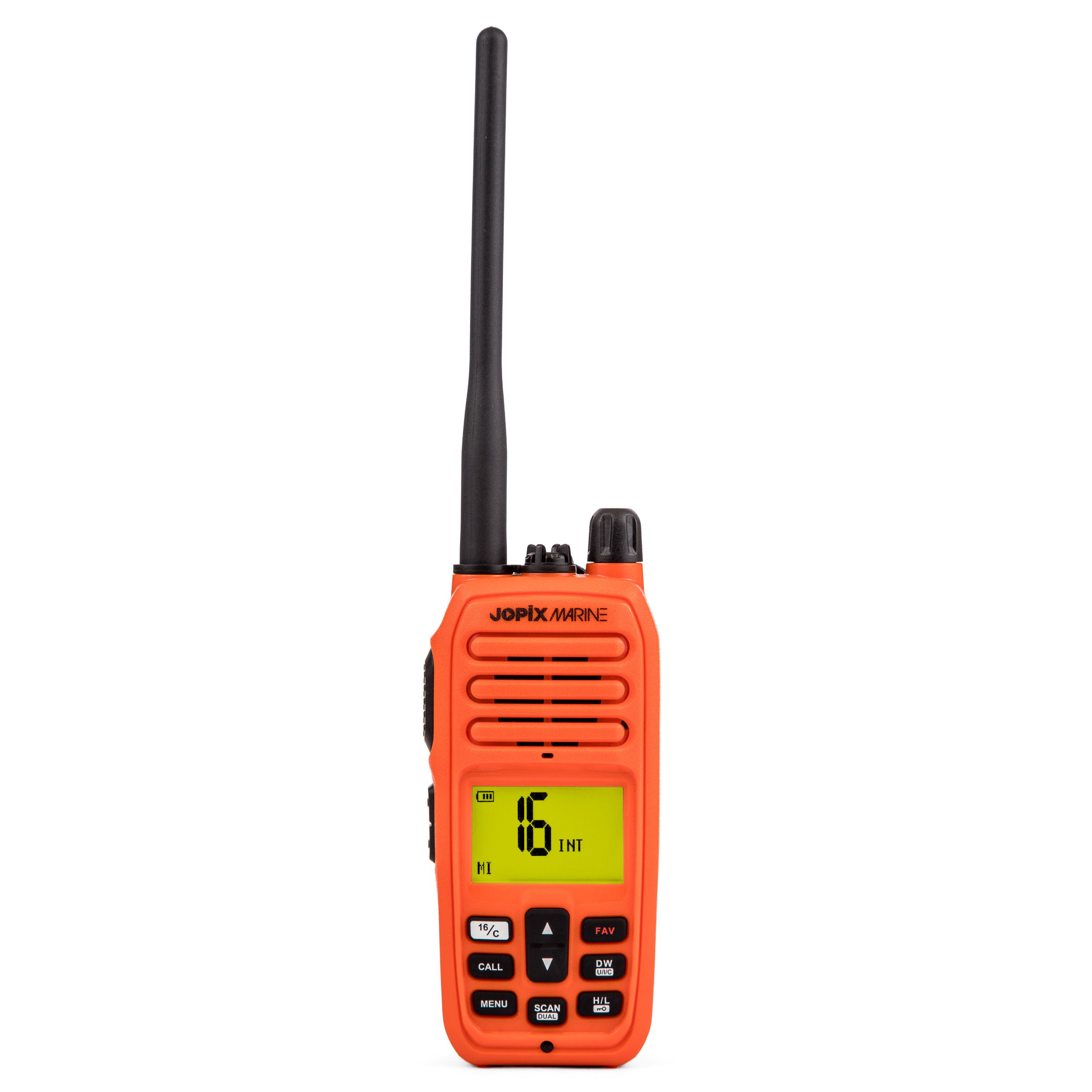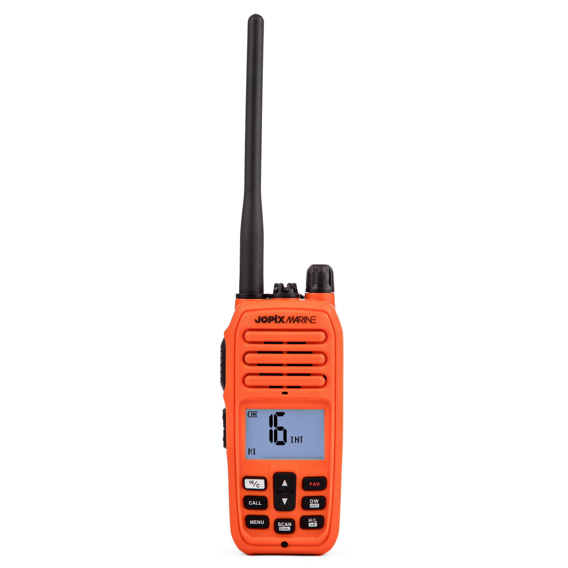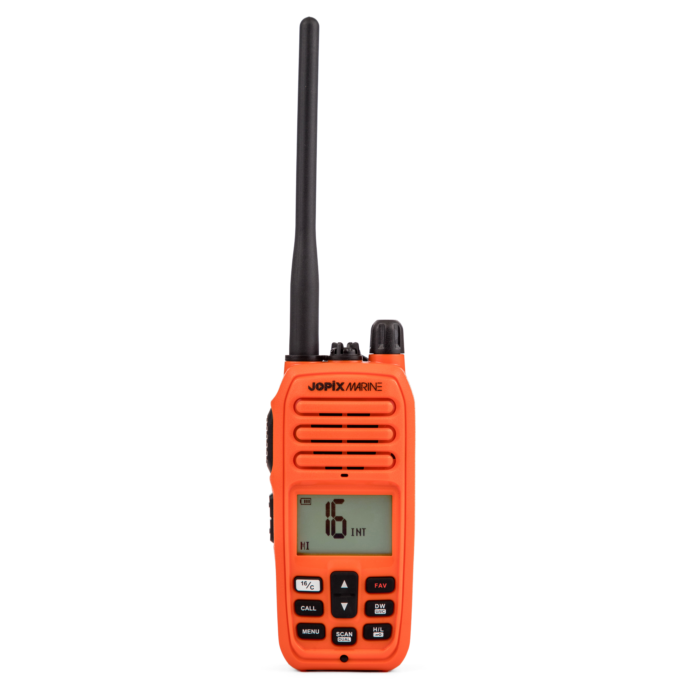 El Jopix 616P Marine en color naranja es la elección perfecta para aquellos que buscan un Walkie de marina confiable y de alta calidad. Con sus múltiples funciones y diseño robusto, estarás siempre conectado y preparado para cualquier situación en el agua.