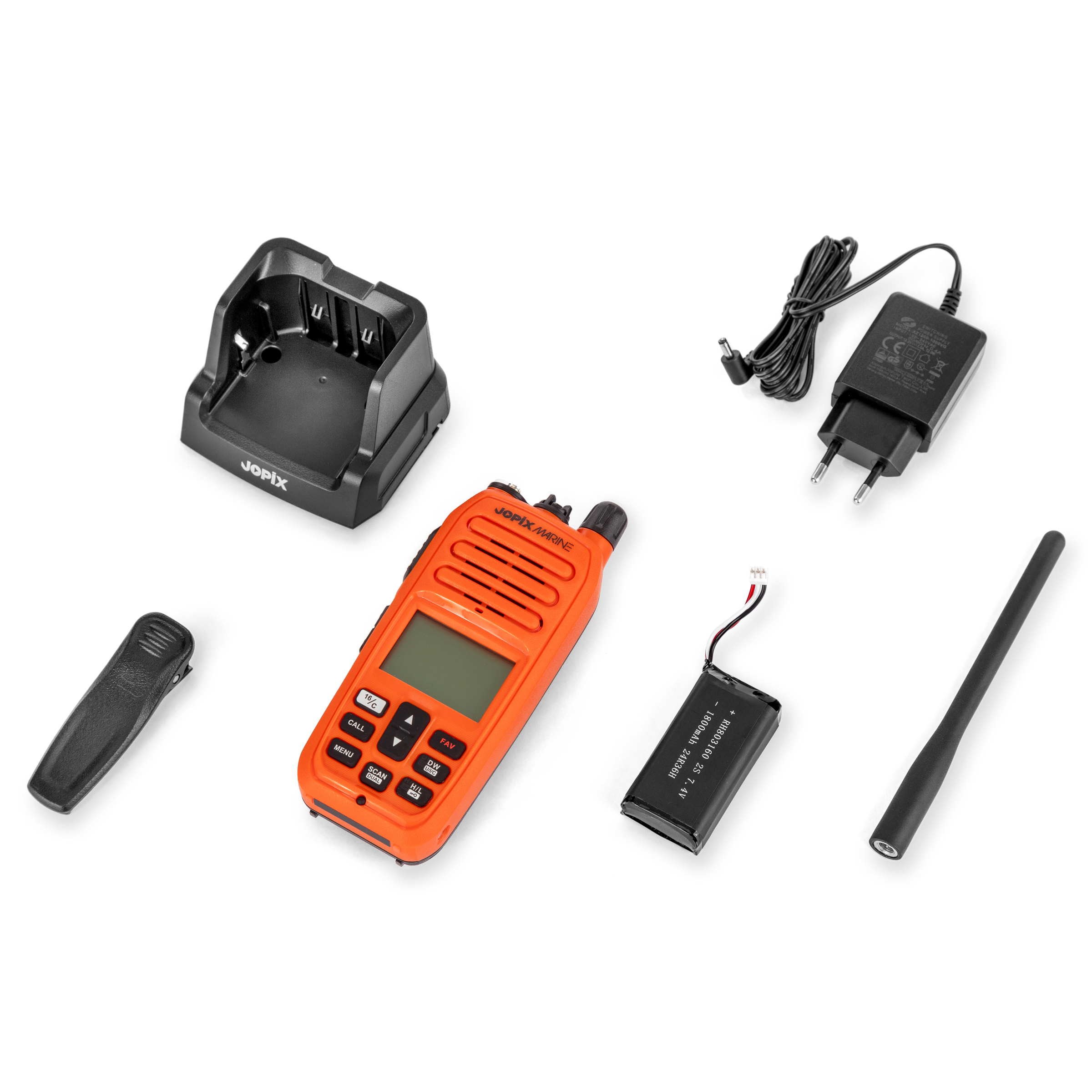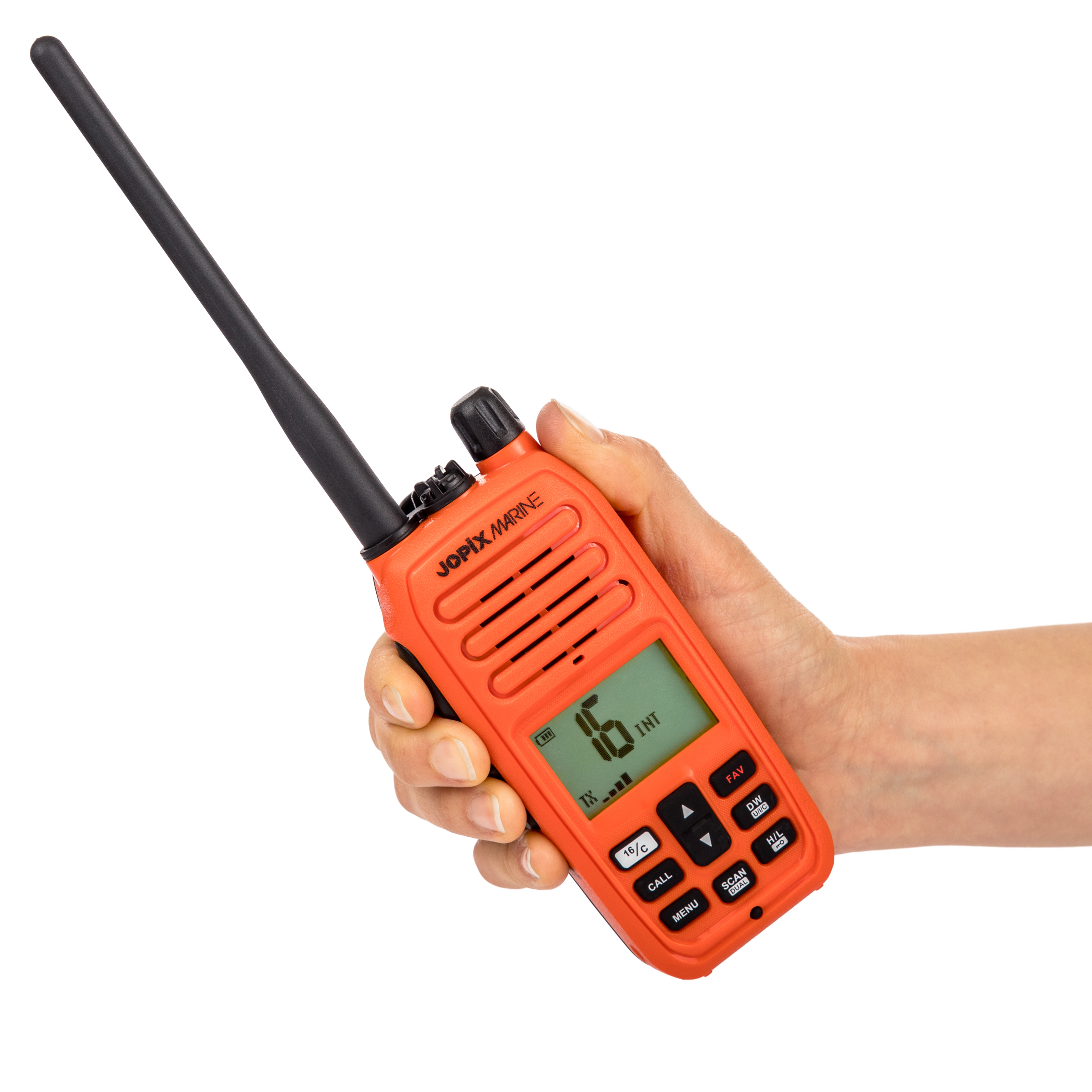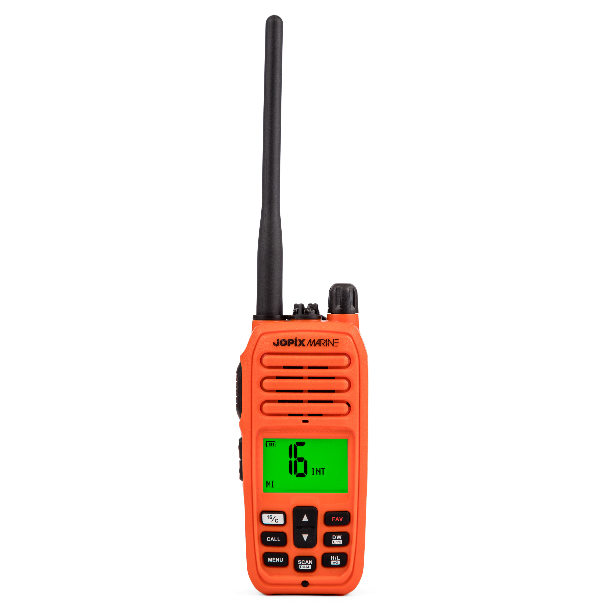 El Jopix 616P Marine en color naranja es la elección perfecta para aquellos que buscan un Walkie de marina confiable y de alta calidad. Con sus múltiples funciones y diseño robusto, estarás siempre conectado y preparado para cualquier situación en el agua.