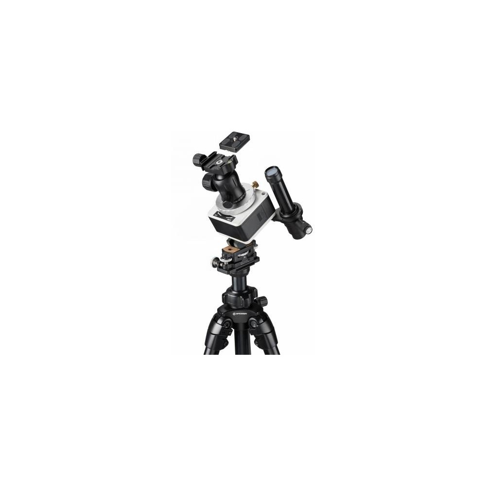 Excepto la cámara y el objetivo, este conjunto incluye todos los componentes necesarios para un inicio rápido y cómo en el mundo de la astrofotografía: Un trípode BRESSER TP-100 DX estable con bolsa de transporte, el cabezal para trípode BRESSER con ajuste de precisión MH-100 (cuña polar), el buscador polar BRESSER para StarTracker PM-100 y, por supuesto, la montura BRESSER StarTracker PM-100 para astrofotografía, con cabezal esférico.