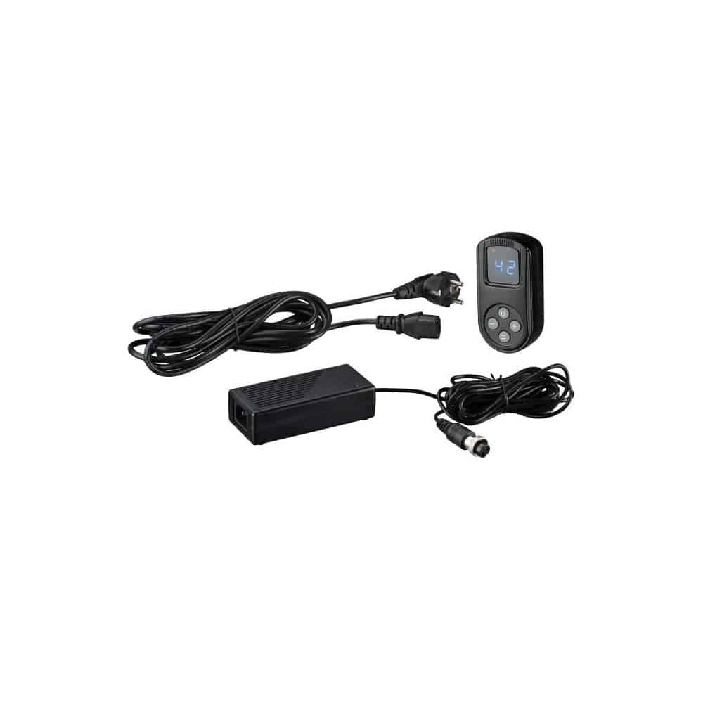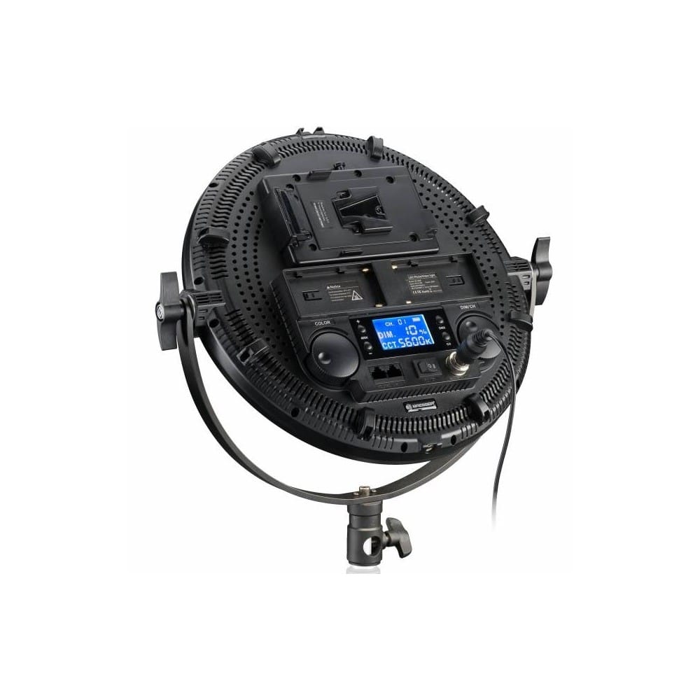La fuente de alimentación a través de un cable de alimentación de aproximadamente 8,6 m de largo le brinda suficiente libertad de movimiento en el estudio. De manera alternativa, la lámpara también puede funcionar con baterías opcionales.