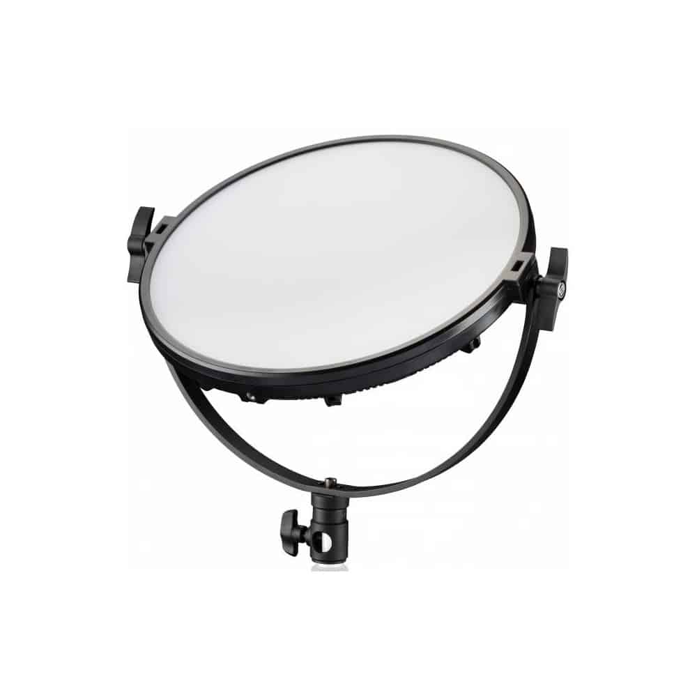 Una luz extremadamente suave y uniformemente distribuida sin punto caliente hace que las lámparas LED redondas y suaves con disco difusor sean la fuente de luz ideal para la fotografía de belleza o grabaciones de video de entrevistas.