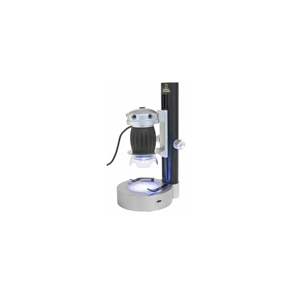 Este microscopio universal le ofrece casi posibilidades ilimitadas. Puede usarse por separado o mediante sujeción a una práctica base, para convertirlo en un microscopio de pie. El soporte proporciona una iluminación de luz transmitida para la oservación de muestras y está equipado con una rueda de enfoque. El microscopio portátil ofrece luz incidental (12 LEDs) y puede usarse para observar minerales o insectos.