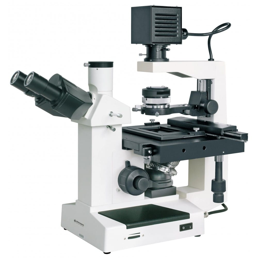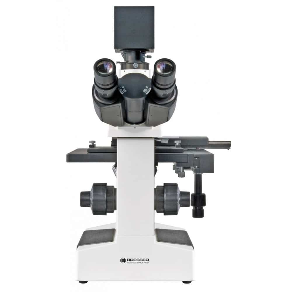 BRESSER Science IVM 401, la dirección de iluminación y observación usual se invierte: Una muestra se ilumina desde arriba y se observa desde abajo. Este tipo permite la microscopia de sedimentos y organismos vivos transparentes, que se encuentran en la parte inferior de un medio líquido. Por ejemplo, el plancton o protozoos en el terreno de la botellas de cultura, que sin necesidad de ser volteadas, pueden ser investigadas. Por lo tanto, este microscopio es adecuado para los servicios públicos de agua, los institutos de investigación y universidades, para recibir tratamiento médico, la ganadería, la agricultura, etc.