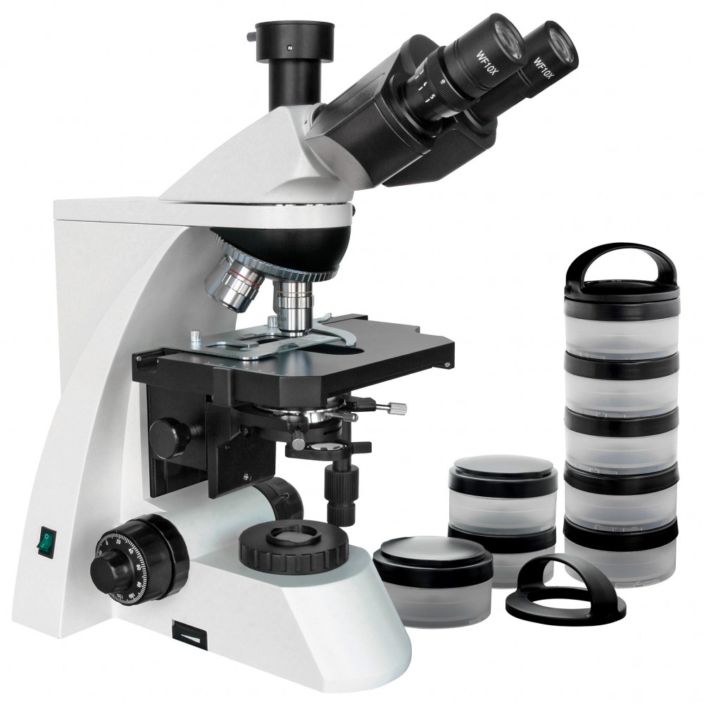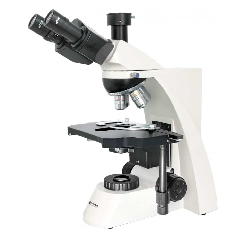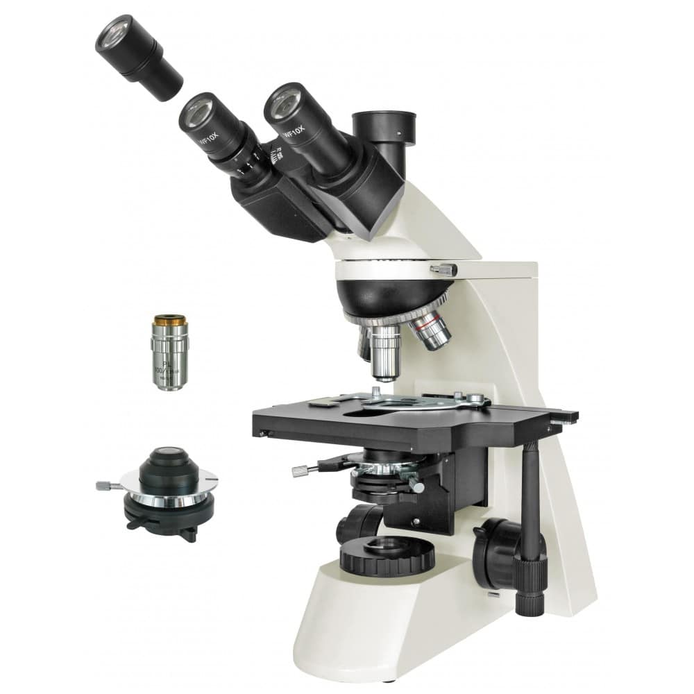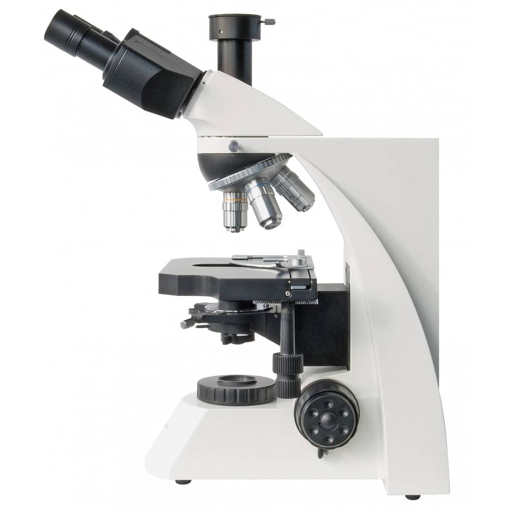 microscopio trinocular biológico de primera calidad: Esto significa una imagen excelente, buena ergonomía, alta estabilidad y un diseño atractivo y moderno. Se trata de un microscopio de laboratorio, que permite un uso intensivo, por ejemplo, en la medicina, la biología, la agricultura y el área industrial. Además, podemos recomendar a los aficionados un “microscopio para toda la vida”. Una característica importante del TRM-301 es su capacidad para la iluminación Köhler. Esta inmejorable y óptima iluminación brillante, fresca (ir fácil en el objeto), homogénea y libre de reflejos y ricas en contraste utiliza completamente la eficiencia de los microscopios ópticos. La iluminación Köhler es el estándar para la investigación científica y la microfotografía. Uno tiene que utilizar el diafragma de campo y condensador Abbe de altura y enfoque regulable (apertura numérica 1,25; con diafragma iris). Naturalmente, la TRM-301 tiene otras características, que son típicas de los microscopios de alta calidad: Platina movible longitudinal y transversal , mandos de enfoque ergonómicos y coaxiales (unidad relativa: 200 µm / full turn), regulador de luz, objetivos planaacromático (4x, 10x, 40x, 100x aceite retráctil), 10x oculares de campo amplio (montado en el ocular inclinado 30 ° tubos), el ajuste de distancia pupila-ocular, y ajuste de dioptrías phototube.
