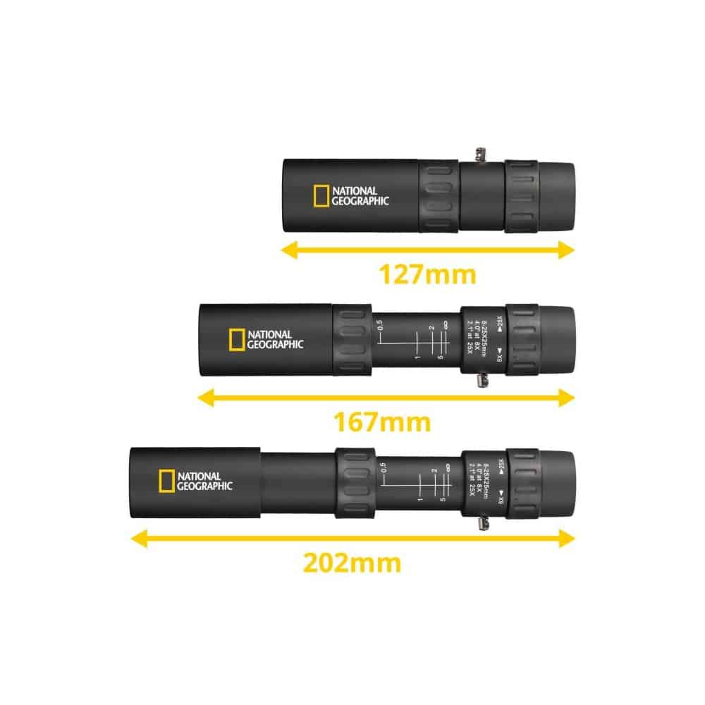 El revestimiento completo de las lentes y el material de vidrio óptico proporcionan una calidad de imagen clara y brillante. Por tanto, a partir de ahora, cuando quiera ver con más detalle a un conejo en el jardín o un globo aerostático en el cielo, con el monocular con zoom NATIONAL GEOGRAPHIC 8-25×25 estará perfectamente equipado.