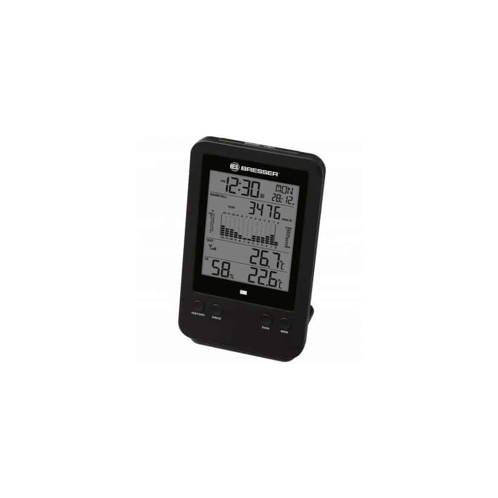 El pluviómetro profesional de BRESSER le muestra los valores de precipitación detalladamente en milímetros, pero también la temperatura interior y exterior se muestran de forma precisa. El pluviómetro tiene una distancia de alcance de hasta 150m en campo libre. De esta forma, podrá montarlo en el lugar más apropiado para medir las precipitaciones. El alcance inalámbrico se realiza mediante la radiofrecuencia en la banda de los 868 MHz. La estación base calcula la temperatura y la humedad, el pluviómetro mide también la temperatura. Con el pluviómetro profesional de BRESSER podrá visualizar los valores de las precipitaciones en horas, días, semanas, meses y años. Además el dispositivo está dotado de un histograma gráfico.