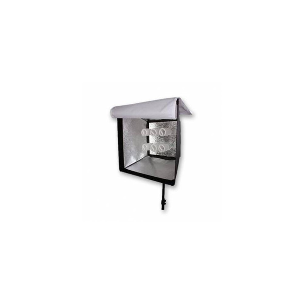 Un gran y práctico portalámparas en el que se pueden girar 6 lámparas, con una rosca E27 adecuada para la base de la lámpara. Las lámparas pueden ser cambiadas de tres en tres de forma independiente. El portalámparas tiene una superficie reflectante alrededor de la cual se coloca una caja suave. Todo esto da una iluminación uniforme y suave. Muy adecuado para la fotografía o la videografía de productos. Puede elegir entre nuestras lámparas fluorescentes de luz diurna JDD-6 5500K de 26 a 85 vatios. Atención: Las lámparas fluorescentes dan 5 veces más luz que las normales.