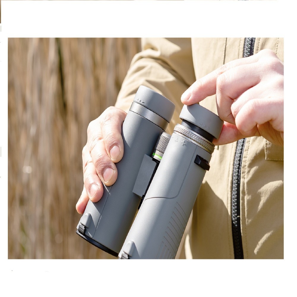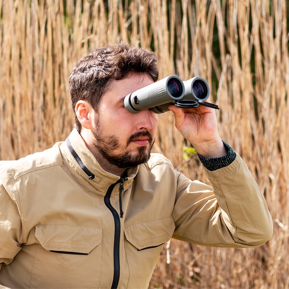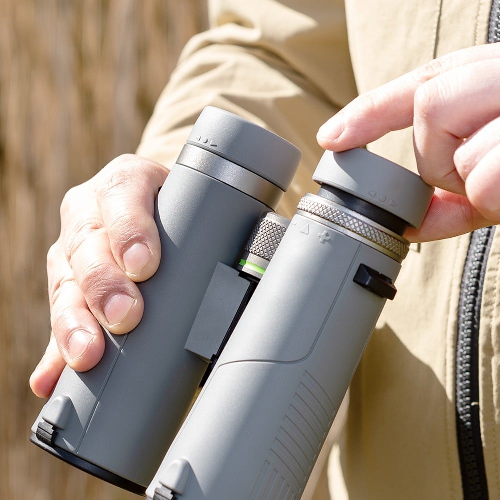 Los prismáticos 10×50 se han diseñado para personas con y sin discapacidad visual. Con los oculares giratorios, puede ajustar fácilmente la distancia entre sus ojos y las lentes oculares. Los oculares LE tienen un gran alivio ocular, lo que permite ver todo el campo de visión cuando se llevan gafas. Incluso en el caso de las personas que no llevan gafas, puede haber diferencias de agudeza entre cada ojo. Los prismáticos cuentan con un ajuste de dioptrías, que permite compensar las pequeñas diferencias de visión y agudizar la imagen.