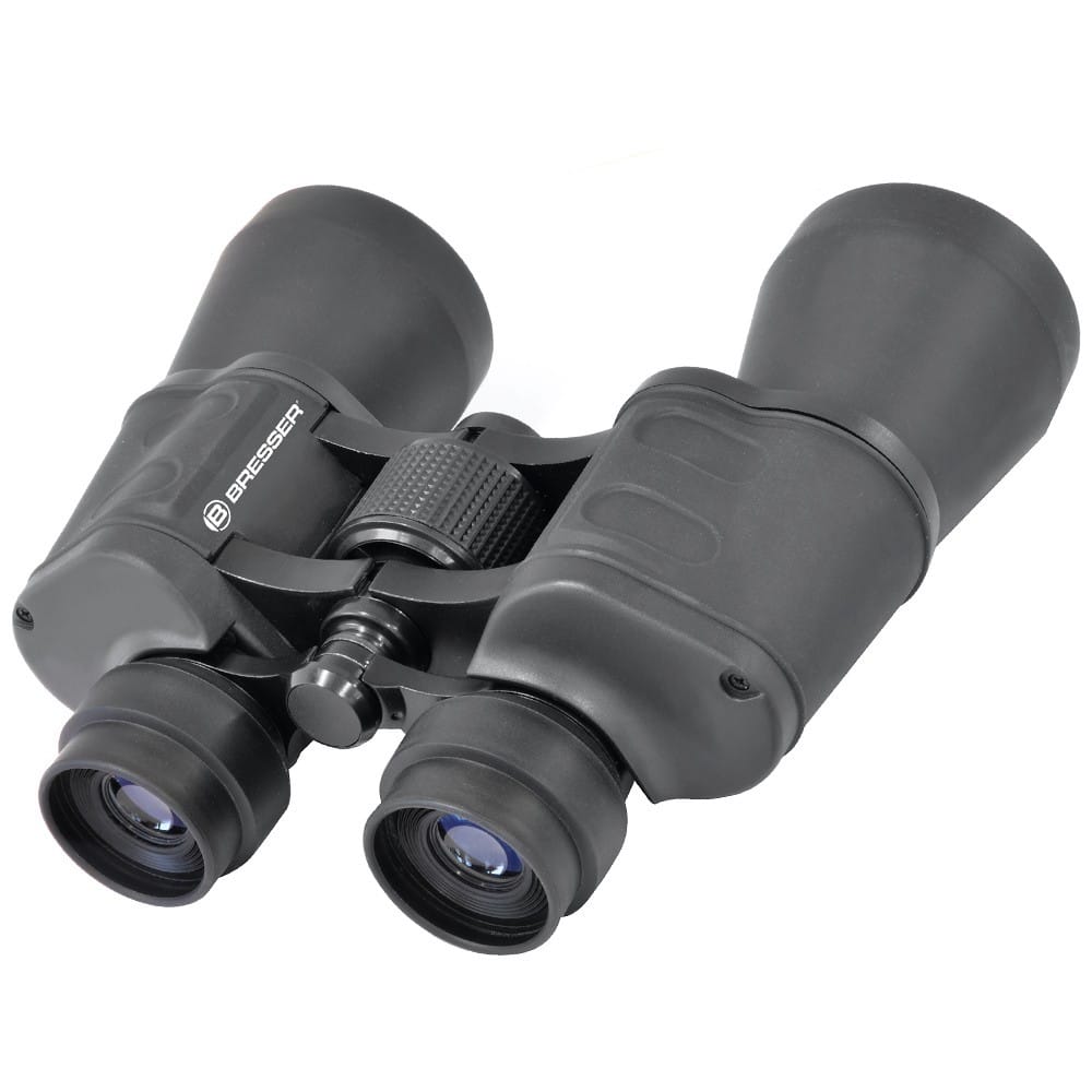 La proporción conveniente entre apertura del objetivo y aumento permite la observación durante el crepúsculo. Los prismáticos son dotados de un ajuste de dioptrías y ojeras de goma plegables para personas que llevan gafas. Los prismáticos BRESSER Hunter 7×50 tienen un revestimiento antideslizante y una conexión para trípodes.