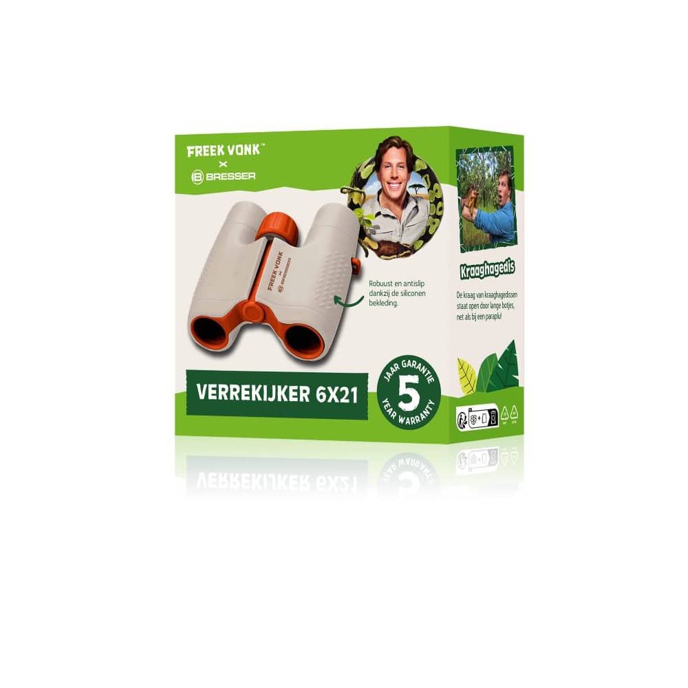 Freek Vonk, el biólogo más famoso de los países del Benelux, se embarca regularmente en expediciones de descubrimiento y, por supuesto, siempre lleva consigo sus prismáticos. ¡No pueden faltar en tu equipo de aventura! Con estos prismáticos infantiles FREEK VONK x BRESSER 6×21, verás todo lo que te encuentres en tus aventuras 6 veces más grande.