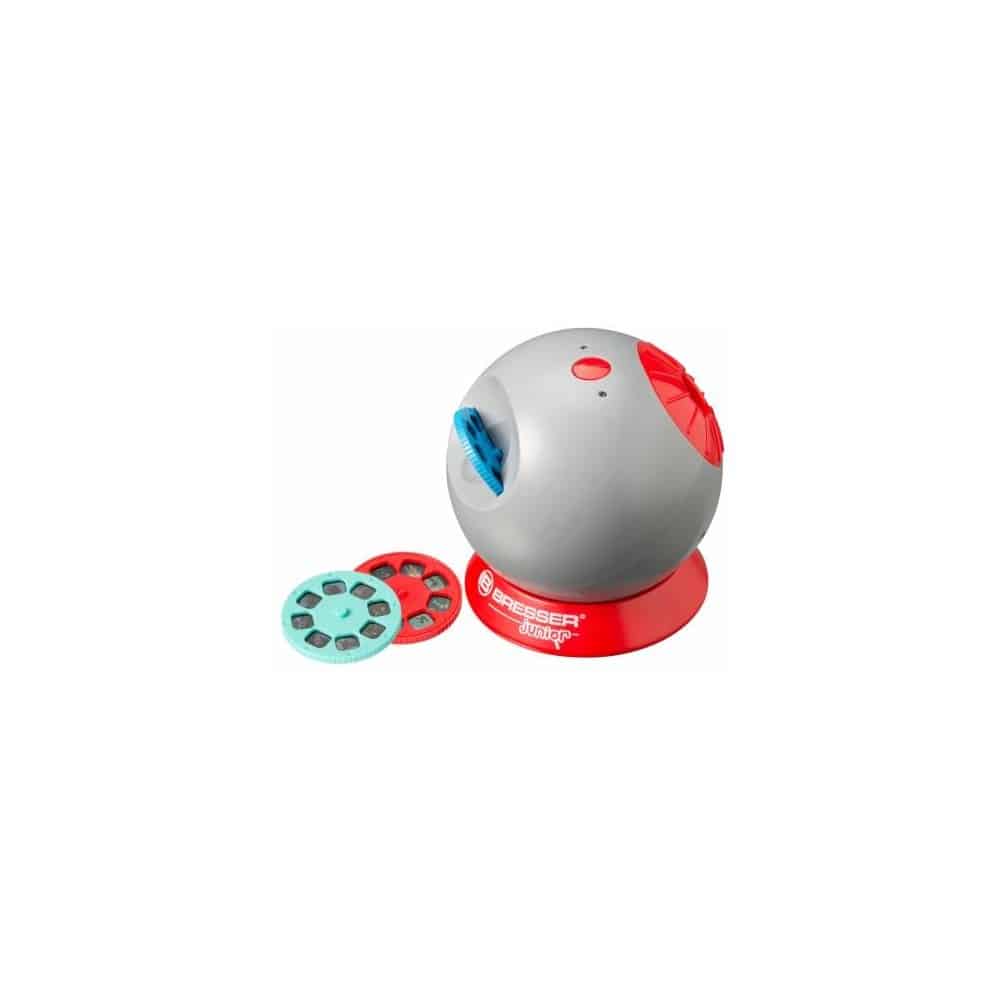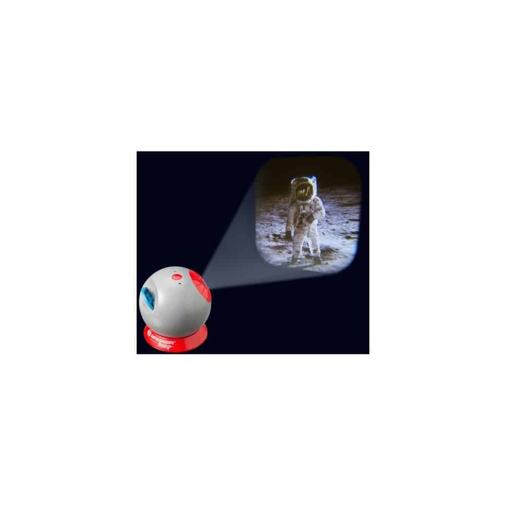 ¿Te entusiasma el espacio? Ahora puedes llevar a tu cuarto el apasionante mundo de los astronautas, con el proyector del espacio BRESSER JUNIOR MAXI. 24 imágenes de astronomía en tres discos de diapositivas listas para iluminar el techo o la pared de tu cuarto y transportarte al espacio. Solo tienes que decidir qué es lo primero que te va a asombrar: ¿Apasionantes fotos del Sol, la Luna y los planetas? ¿O te interesan sobre todo las imponentes lanzaderas espaciales y los satélites? Por supuesto, también están tus héroes, los astronautas, en la ingravidez del espacio o en la Luna.