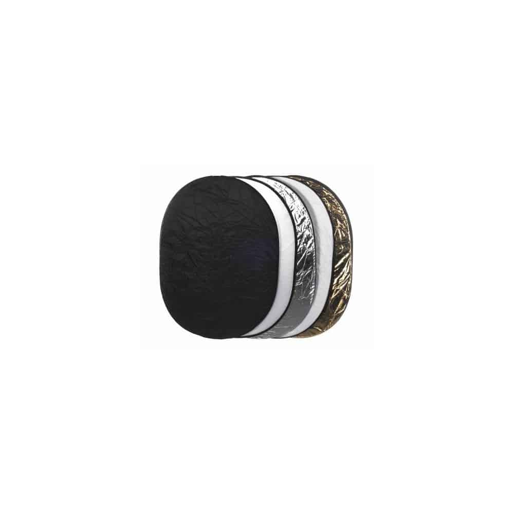 Se trata de un difusor plegable con una tela difusa blanca que a través de una funda reversible le proporciona además cuatro láminas reflectantes diferentes: oro, plata, blanco y negro. Este pequeño sistema reflector es indispensable para estudio. Se pueden crear efectos divertidos y creativos. Fácil de plegar y transportar.