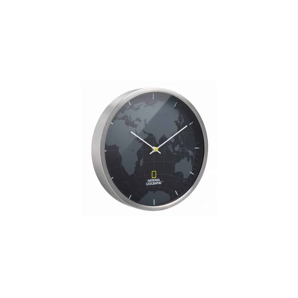 El reloj de pared NATIONAL GEOGRAPHIC con su marco de aluminio pulido y su discreto mapamundi en negro o gris colocado en la esfera otorgan a su hogar una discreta elegancia. Gracias a su mecanismo silencioso puede colocarse también en el dormitorio. ¡Ningún enervante tic-tac perturbará su sueño!