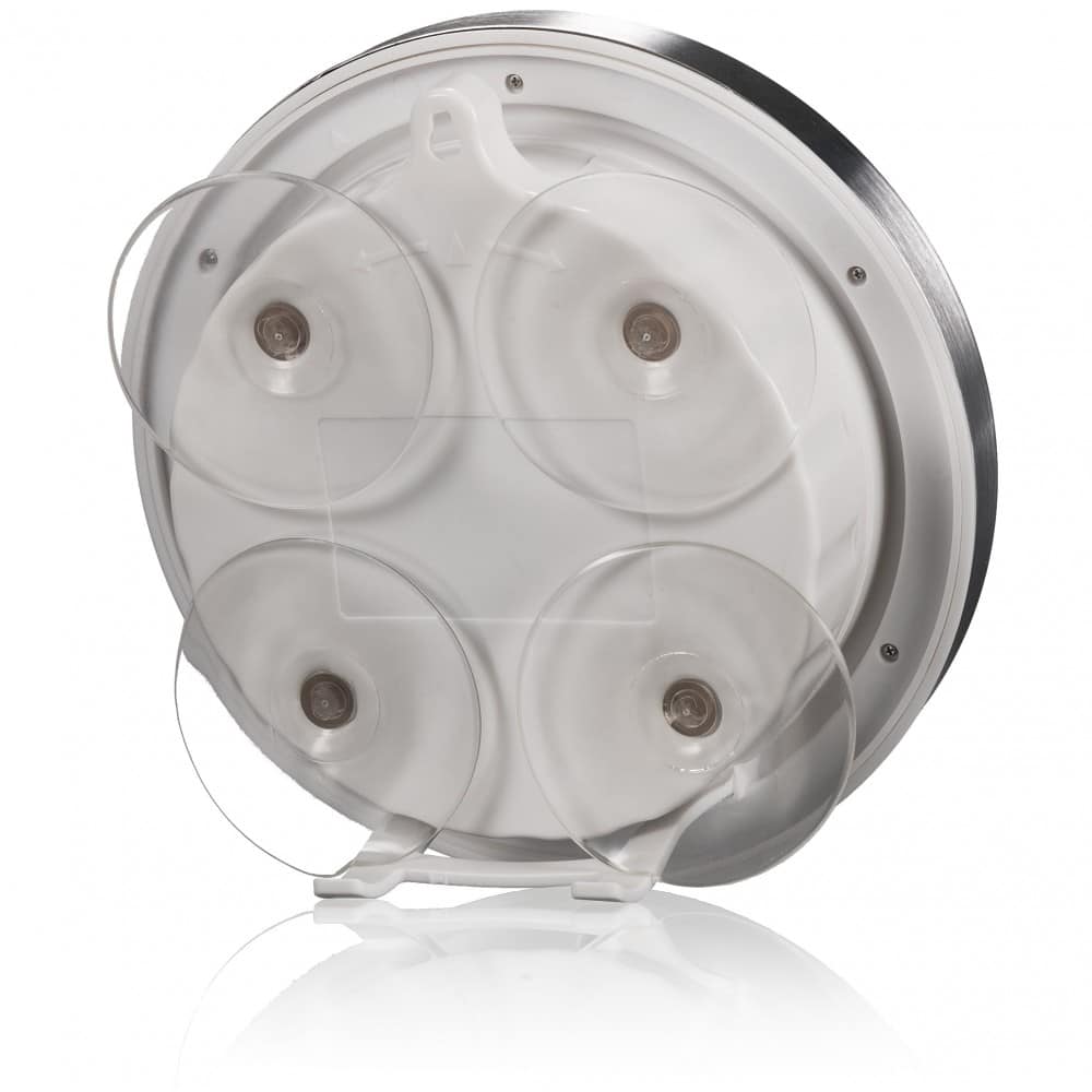 El reloj de baño BRESSER MyTime Bath sobresale por su diseño moderno. La esfera se mantiene deliberadamente simple y hace un bonito contraste con el segundero en rojo. El reloj está en un marco de aluminio cepillado precioso. Además de la visualización de la hora, este accesorio baño también tiene una pantalla digital de temperatura (° C / ° F). Por supuesto, el reloj es resistente a las salpicaduras. Puede montar en la pared con ventosas o sobre una superficie plana usando el soporte. Ventosas y un soporte se incluyen.