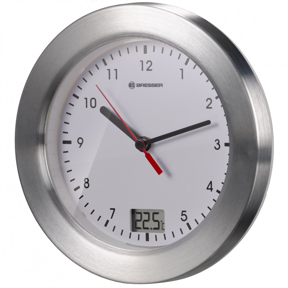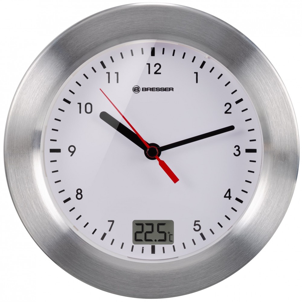 Reloj de pared impermeable con un reloj de cuarzo y marco de aluminio cepillado para el baño