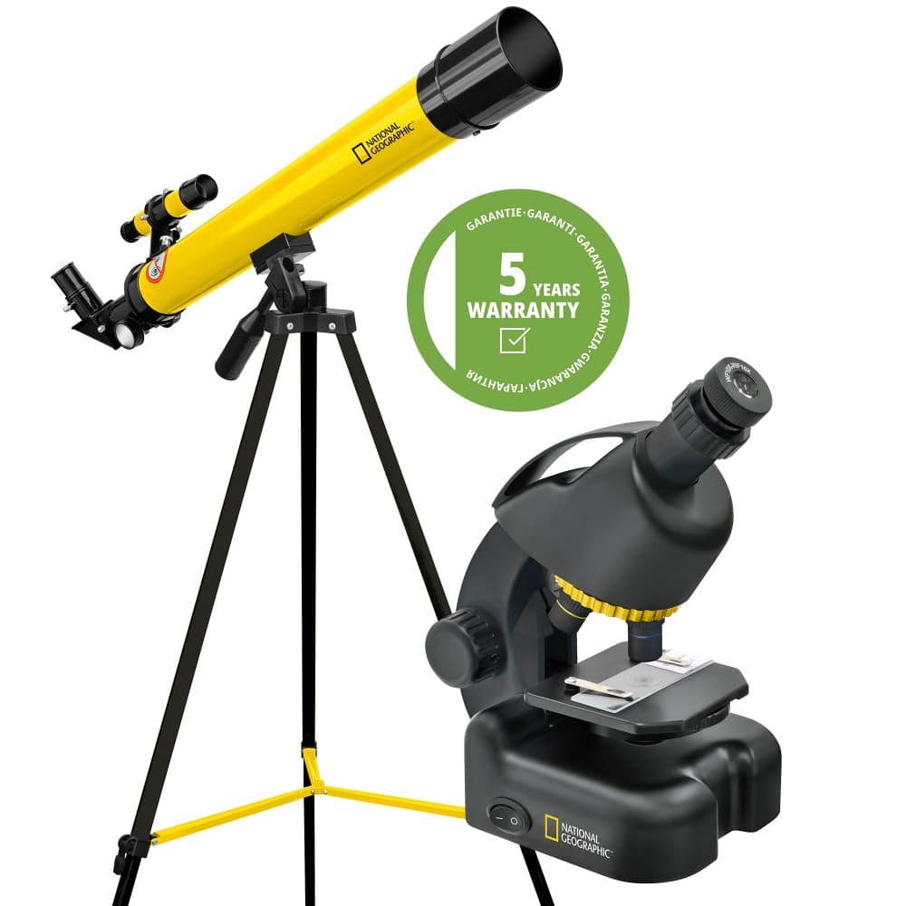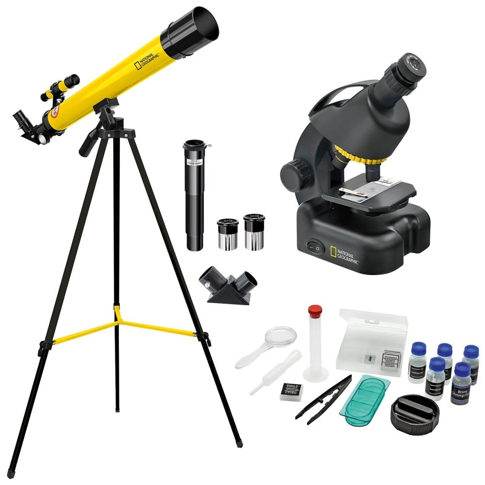 El juego de telescopio y microscopio NATIONAL GEOGRAPHIC te ofrece todo lo necesario para que puedas descubrir y experimentar la astronomía y la microscopía. Un auténtico telescopio con 100 aumentos y un microscopio con 640 aumentos. ¡El juego lo completa un amplio paquete de accesorios!
