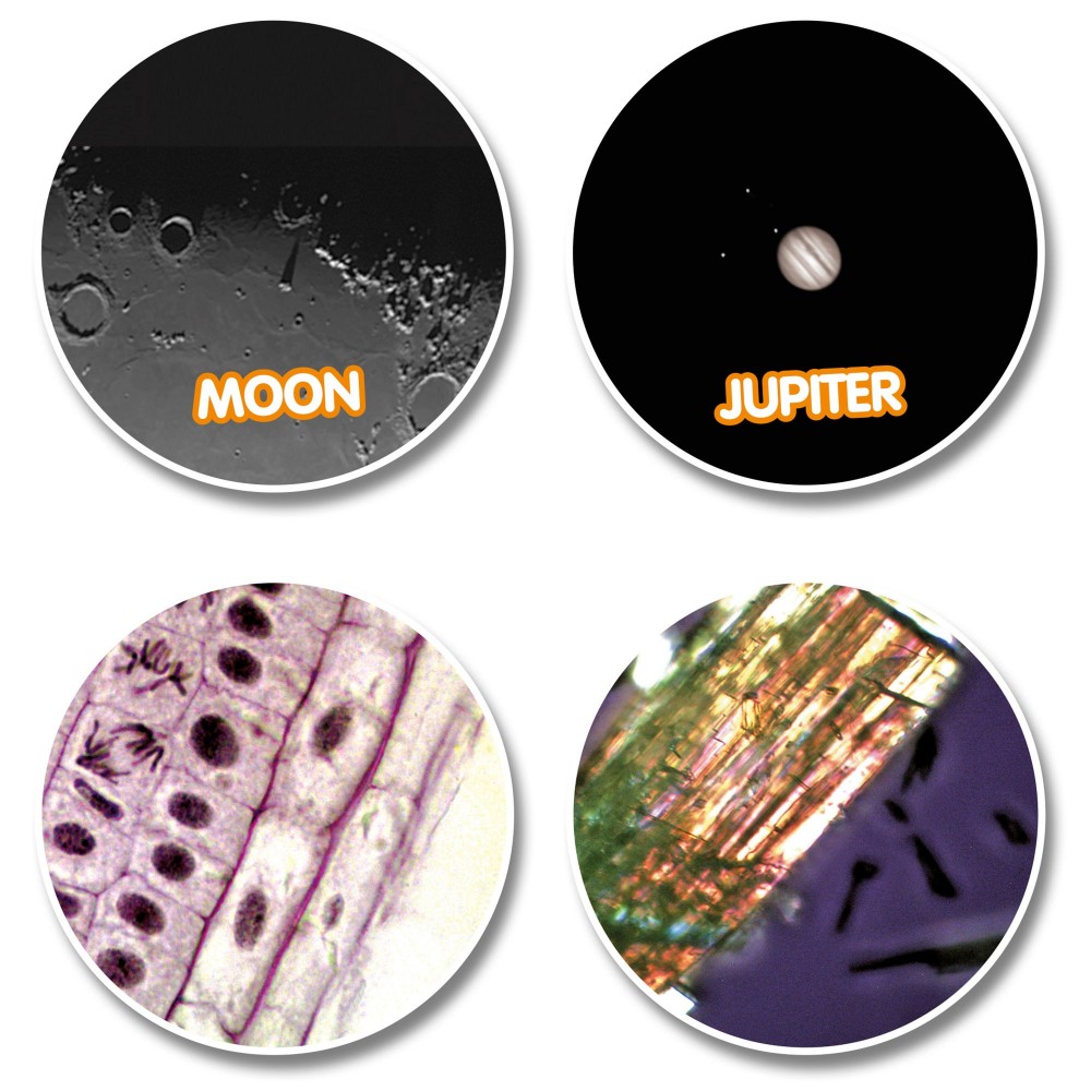 El juego de telescopio y microscopio te ofrece todo lo necesario para que puedas descubrir y experimentar la astronomía y la microscopía.