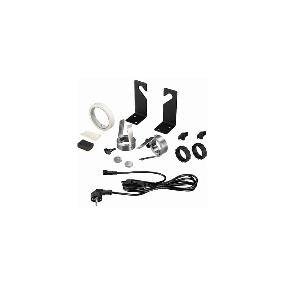 El sistema se puede montar en la pared del estudio o en el techo de la sala utilizando los soportes de pared incluidos. No obstante, también puede usarse en trípodes de lámparas estables.