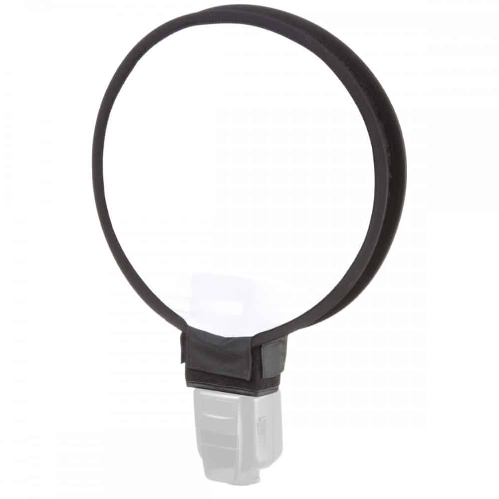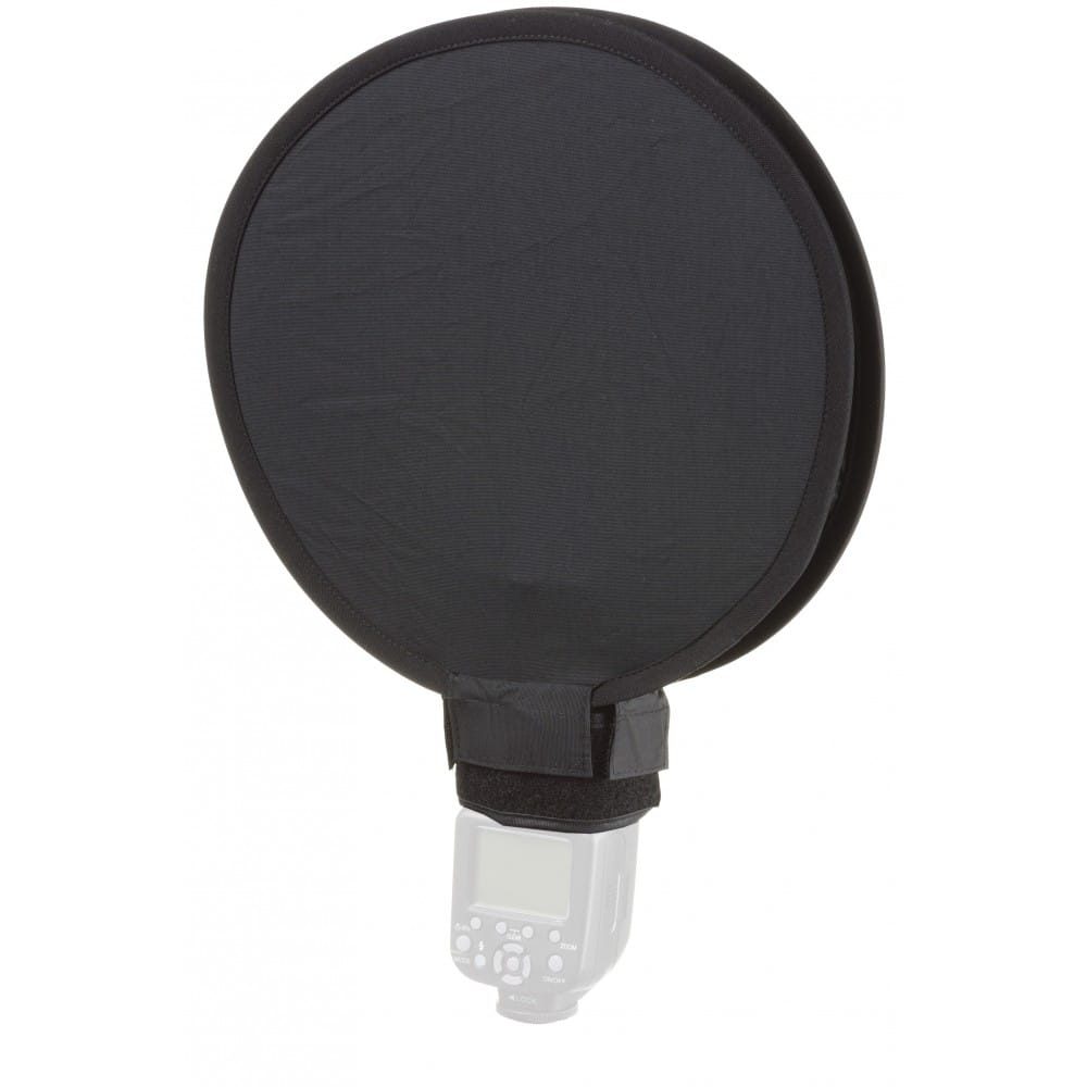 This is a universal softbox which can be used with all camera flashes. The flash can be put through an opening underneath.