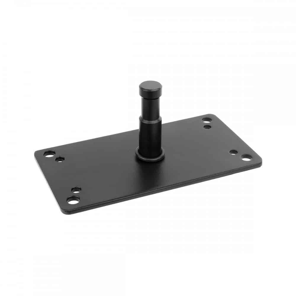 Práctico accesorio para sujeción de objetos, un resistente soporte de pared metálico, para montar en pared o techo y que incorpora un adaptador de espiga para instalar un flash u otro accesorio.
