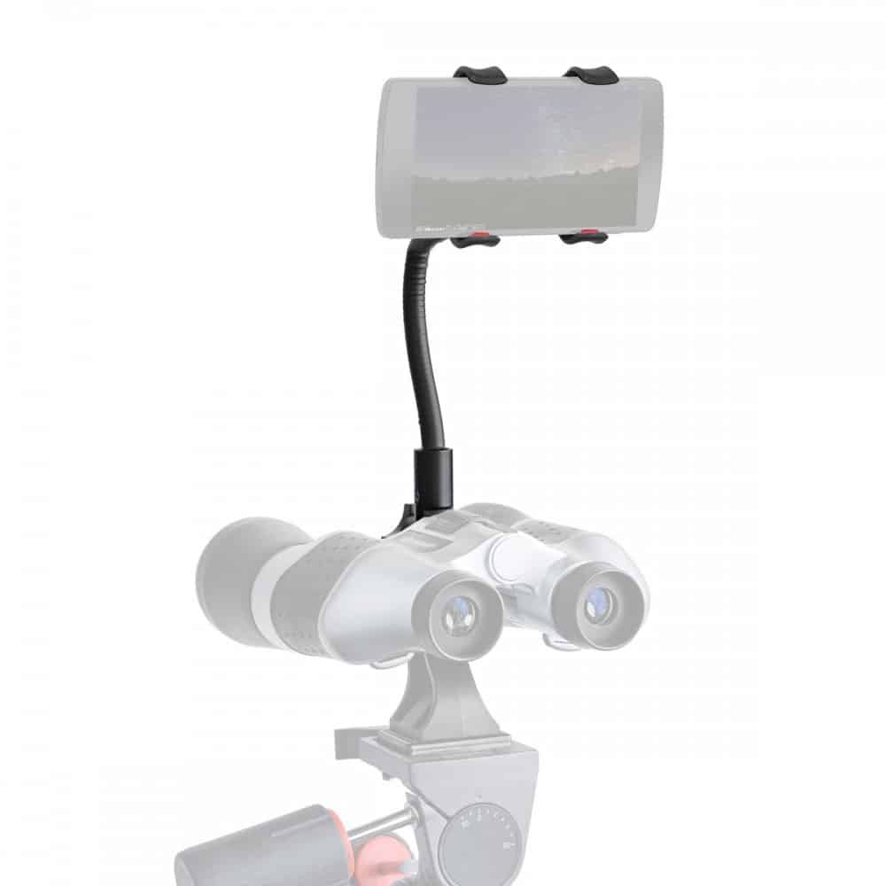 Permite la sujeción de la mayoría de smartphones al telescopio o los binoculares.