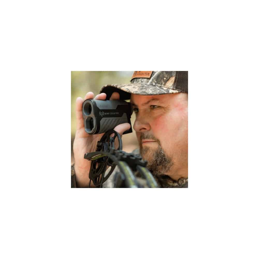 El Bushnell Bone Collector 1000 es un telémetro láser de gran calidad y muy compacto, dotado de la última tecnología digital y que ofrecer lecturas de distancia precisas en un rango de 5-914 metros. Con unas dimensiones de 107x33x74mm., el Bone Collector 1000 de 180 gramos proporciona una captura de objetivo rápida, con una precisión de +/- 1 metro a la distancia máxima. El telémetro láser Bone Collector 1000 también se caracteriza por tener el ARC™ (compensación de rango de ángulo con inteligencia balística) patentado de Bushnell, un nuevo motor de rango para realizar lecturas y dar respuestas más rápidas y coherentes, una pantalla LCD de colores intensos con una mayor transmisión de luz y un armazón resistente al agua (IPX4).