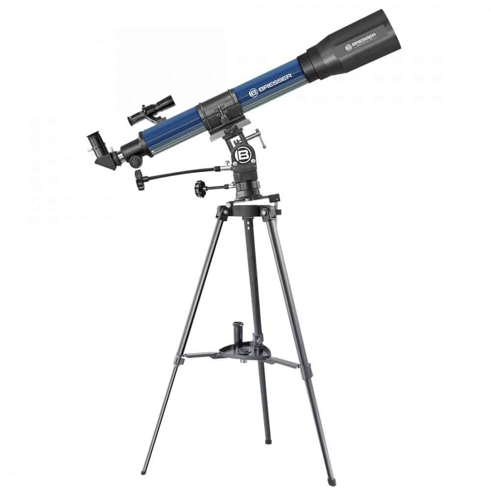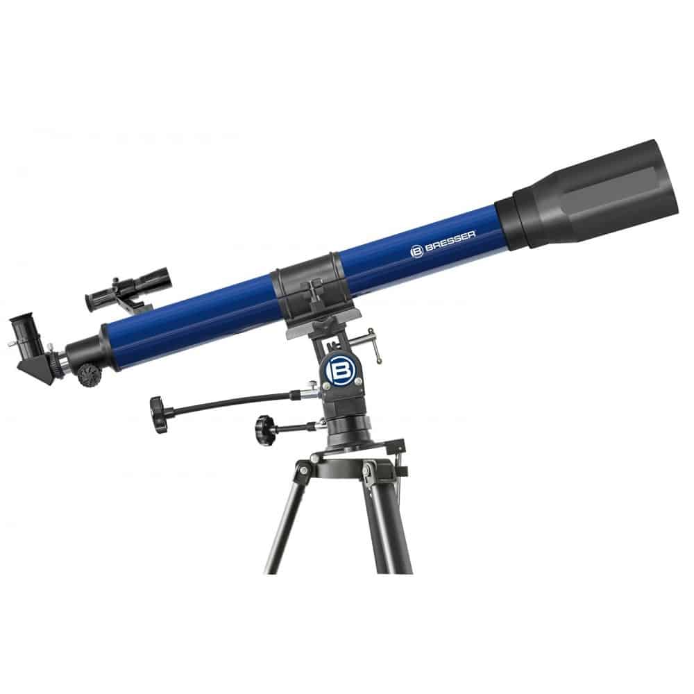 Observación de estrellas como un profesional – muy fácil con el telescopio refractor 70/700 NG.Este telescopio refractor con abertura de 70 mm puede mostrar muchos detalles en los objetos celestes. Es un sistema completo para la exploración de las maravillas del universo, que consiste en el telescopio, montura, trípode y todos los accesorios necesarios. La montura puede no sólo hacer pivotar el telescopio de izquierda/derecha y arriba/abajo, también puede ser utilizado en modo ecuatorial, como hacen los científicos en sus observatorios (ver más abajo bajo “”Características Especiales””).El buscador adicional montado en el telescopio es útil para localizar objetos celestes.Con la lente inversa también pueden verse muchas cosas interesantes durante el día. Con el trípode ajustable en altura, el telescopio puede ajustarse a la altura óptima para observadores grandes o pequeñas. El espejo diagonal suministrado asegura una visualización confortable.